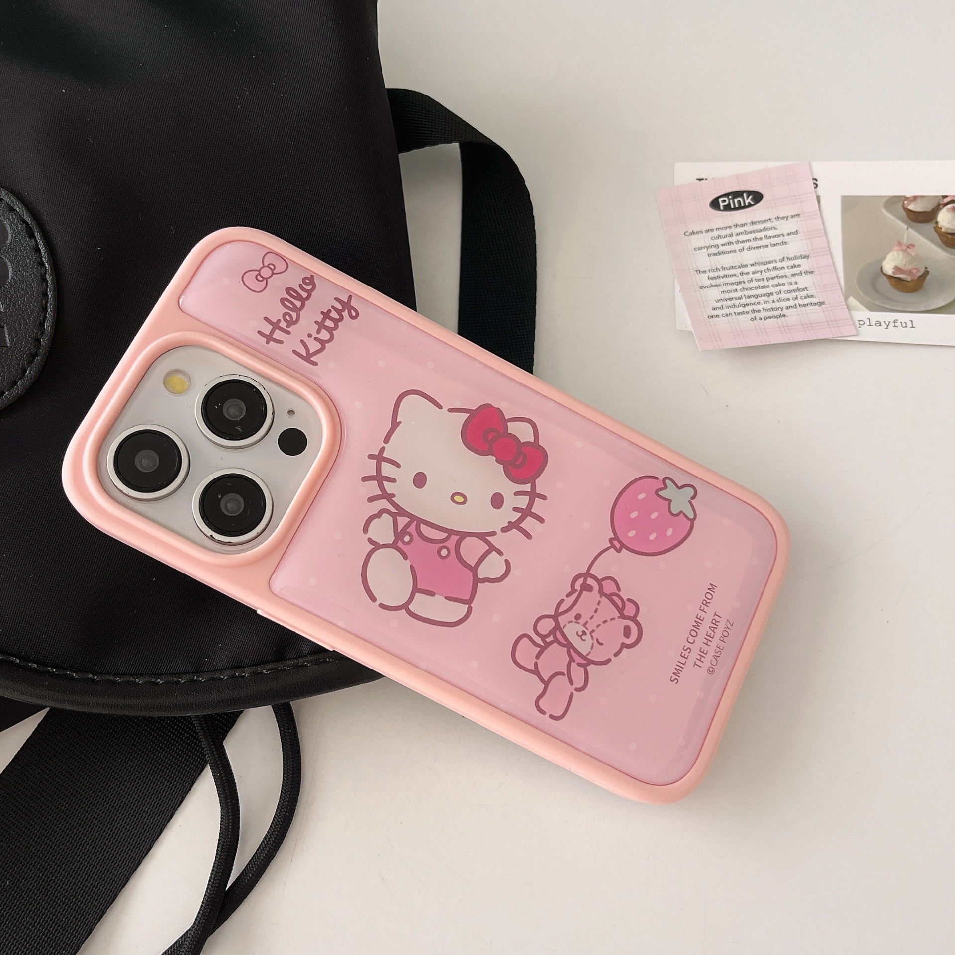 Divertida ilustración de dibujos animados KT gato para Apple 16ProMax funda para teléfono móvil 15Pro soporte 14/13 niñas 15Pm