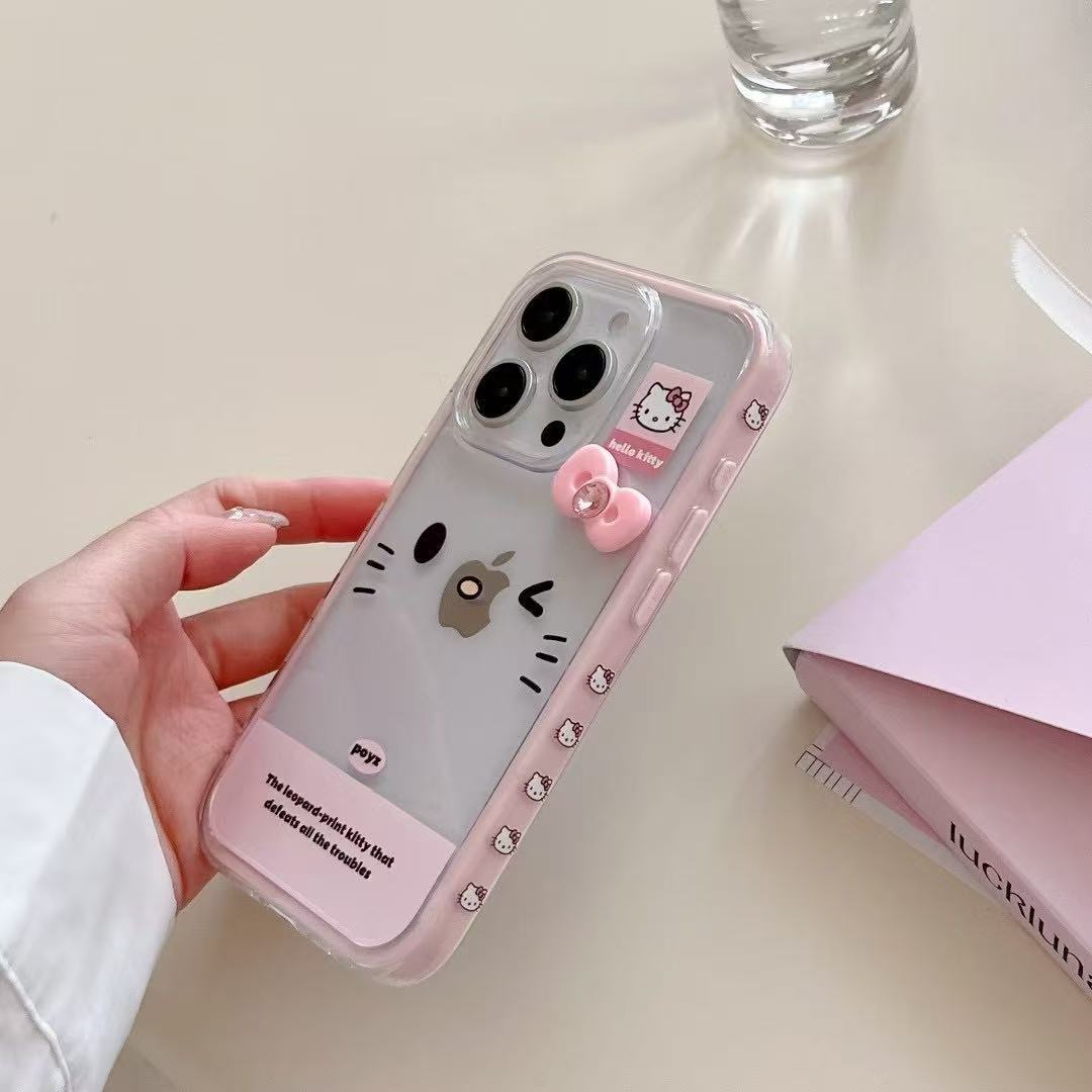 Color dopamina bowknot KT cat apple 16ProMax funda para teléfono móvil 15Pro nuevo 14/13 femenino 15