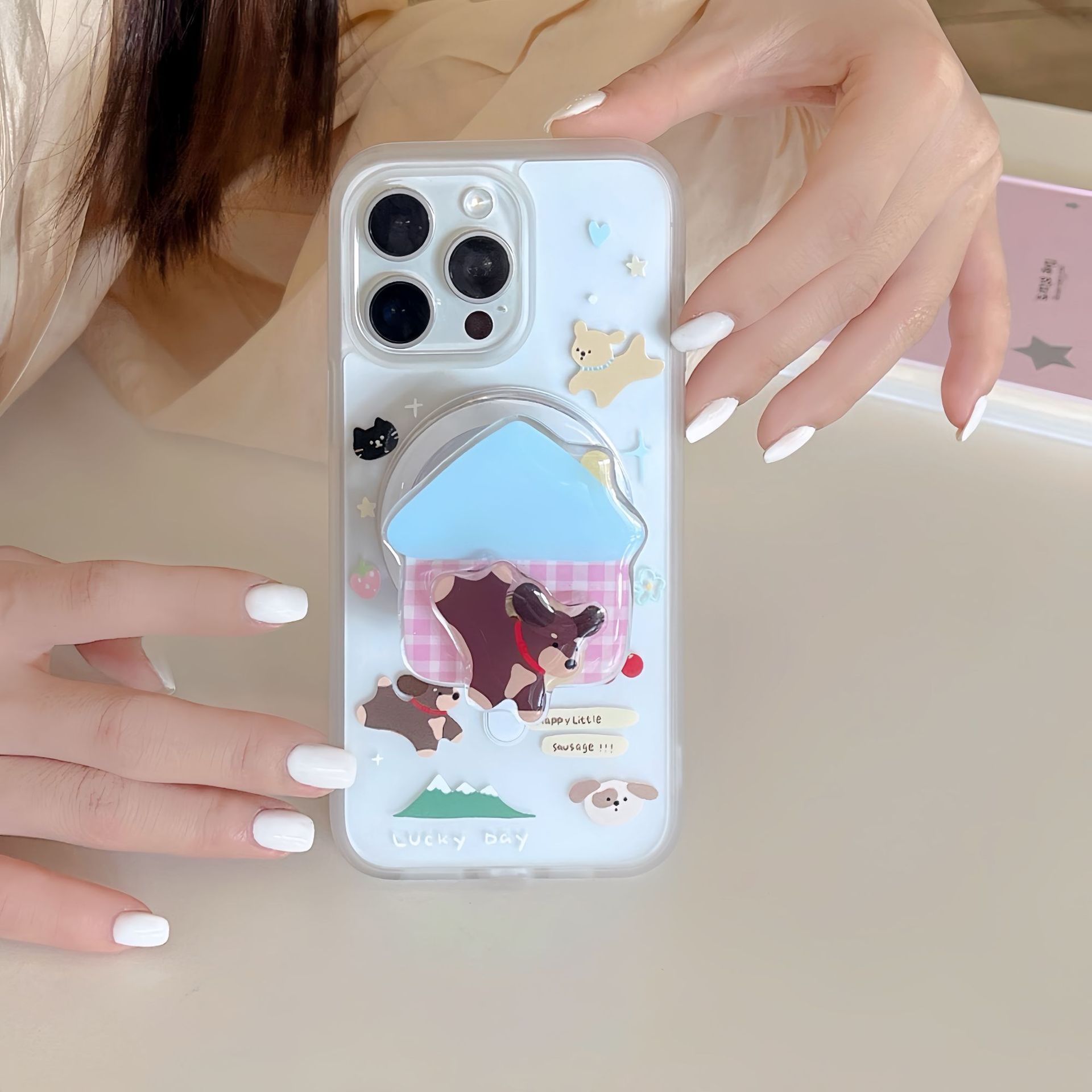 Cartoon House Dachshund Dog para iPhone16 funda para teléfono móvil 15ProMax nicho 14Pro atracción magnética 13 nuevo 16P