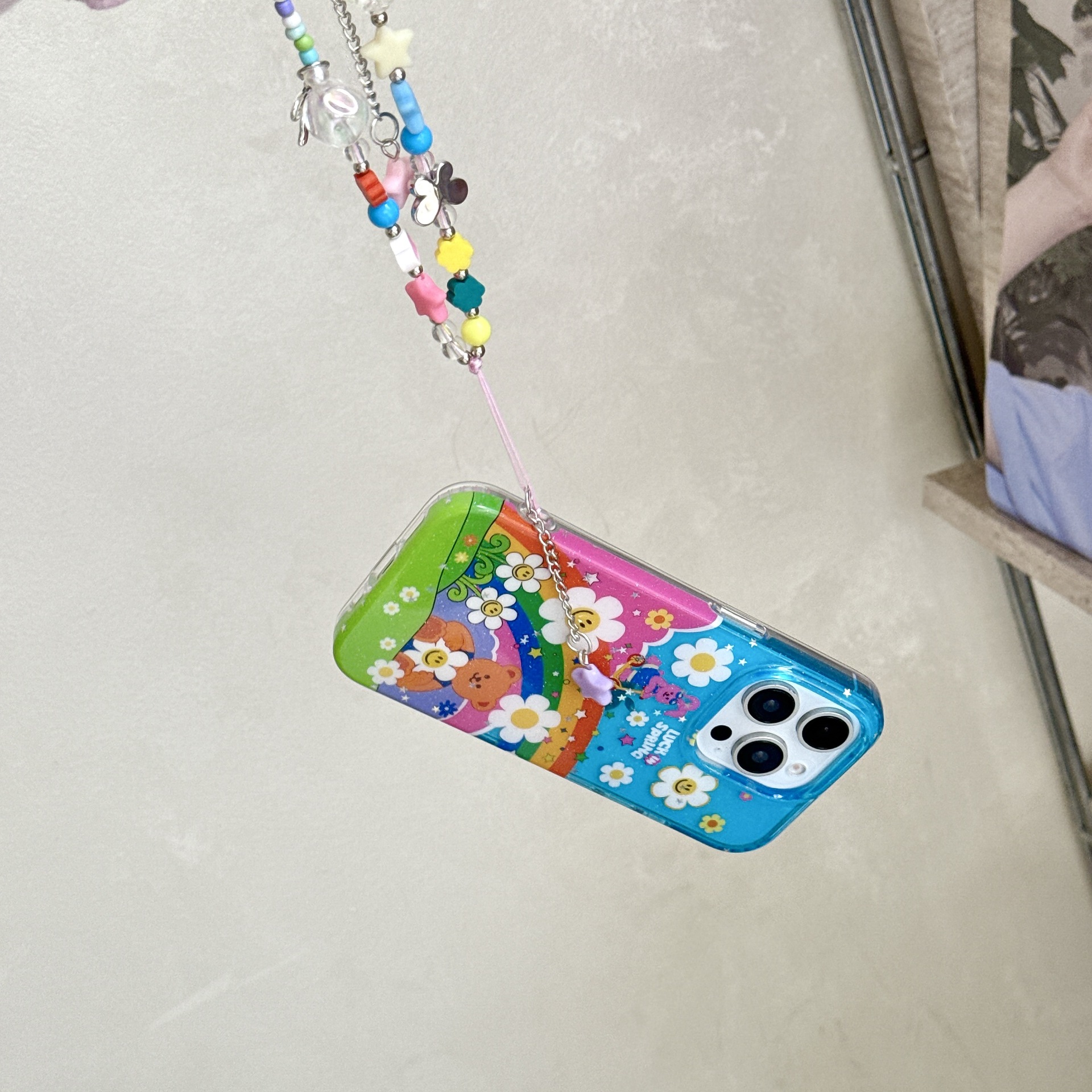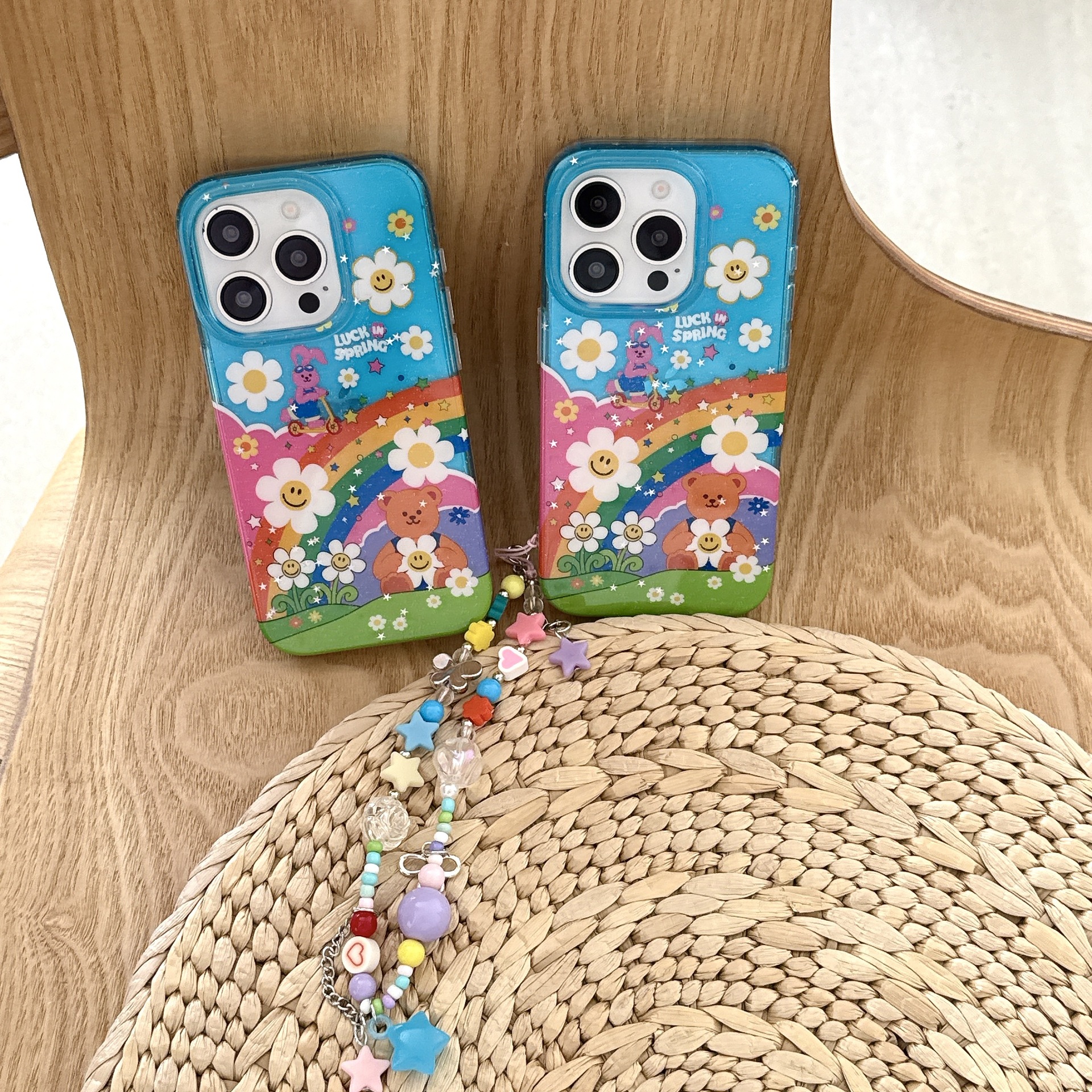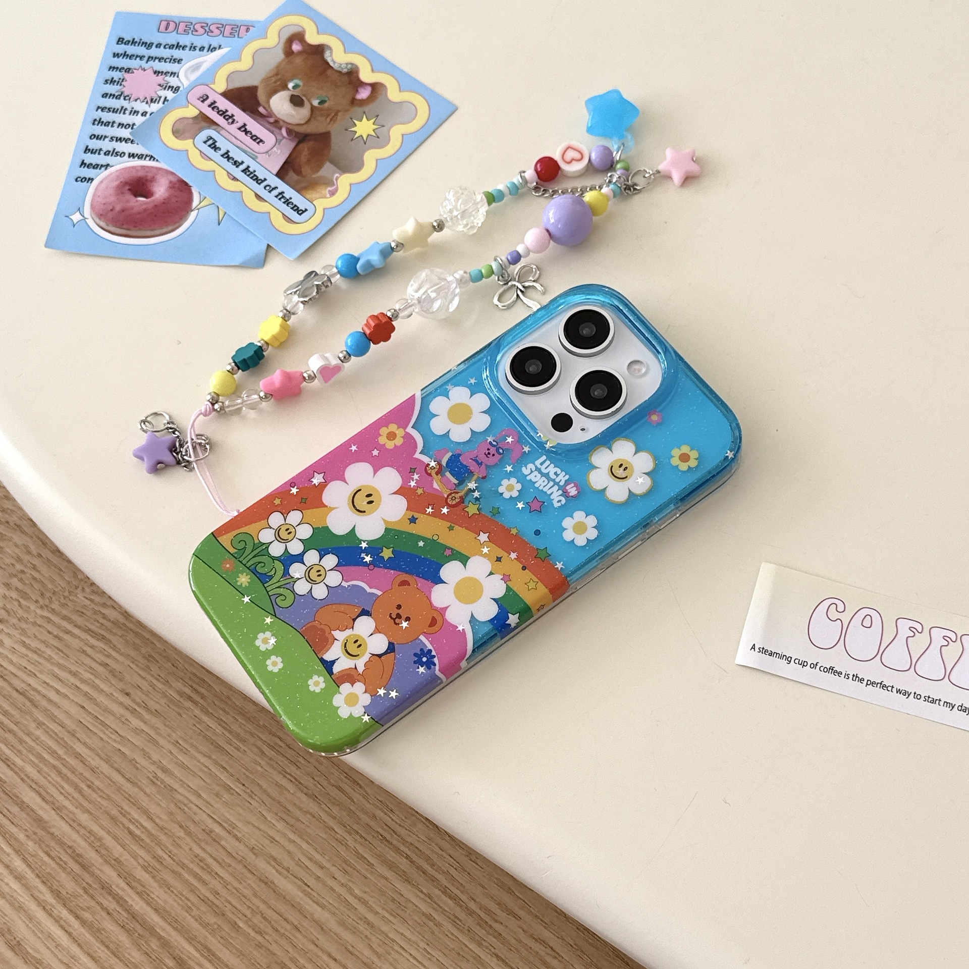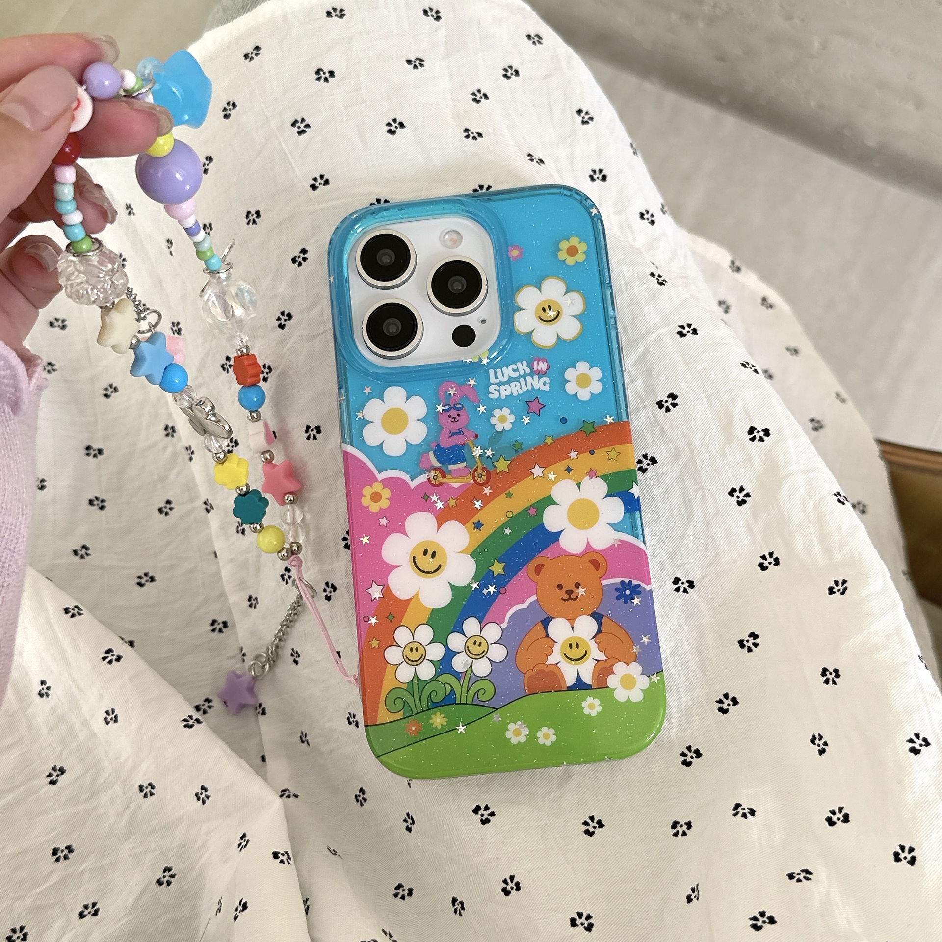 Capa única-sonriente flor oso arcoíris JY,Cadena sonriente flor oso arcoíris jy