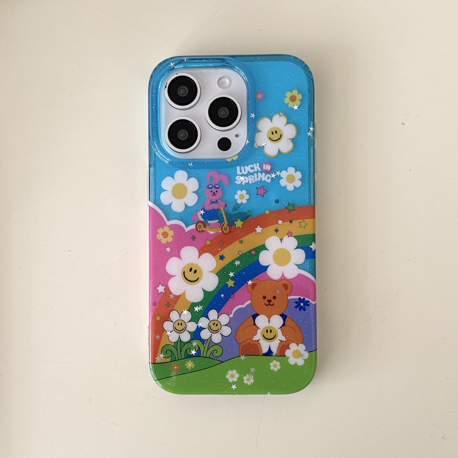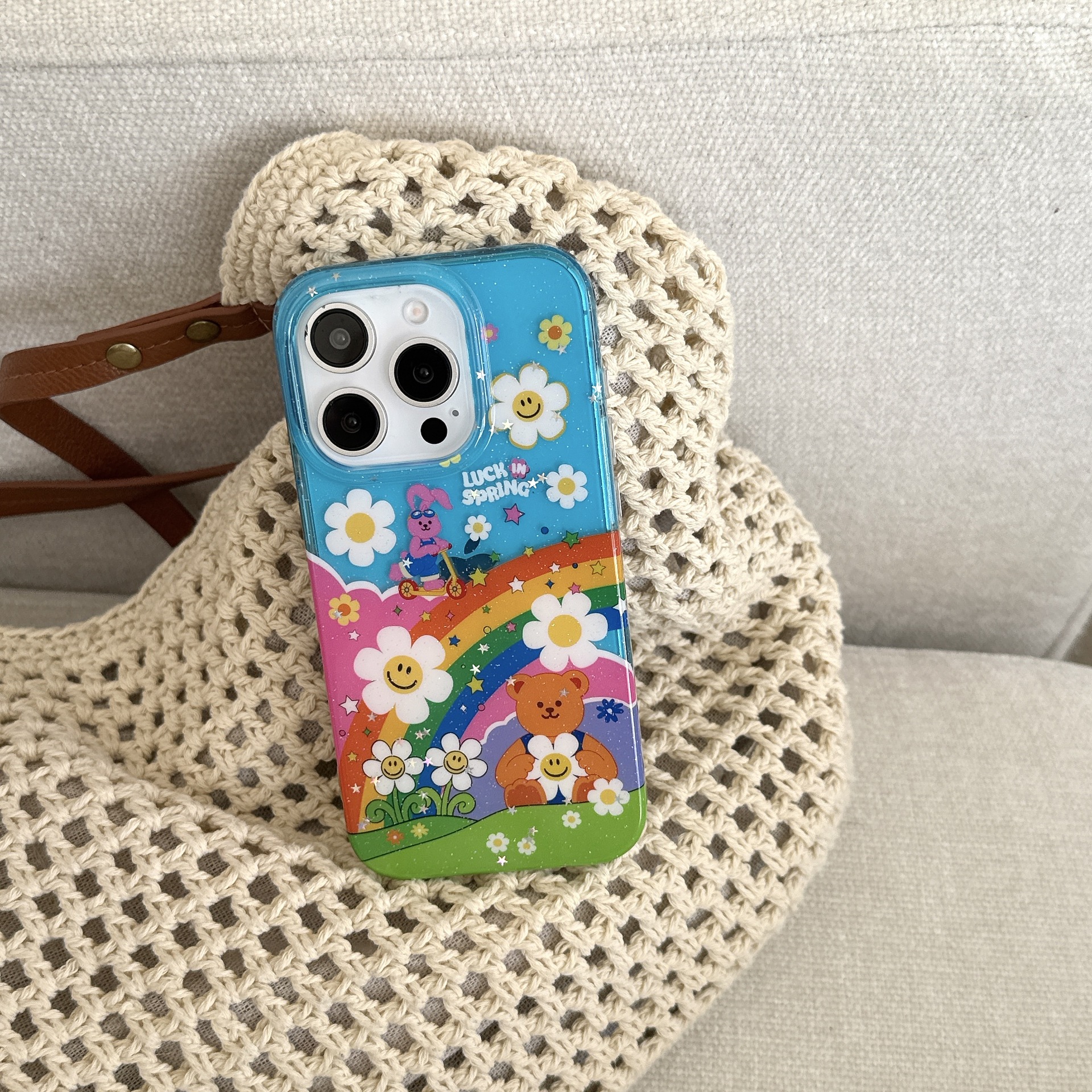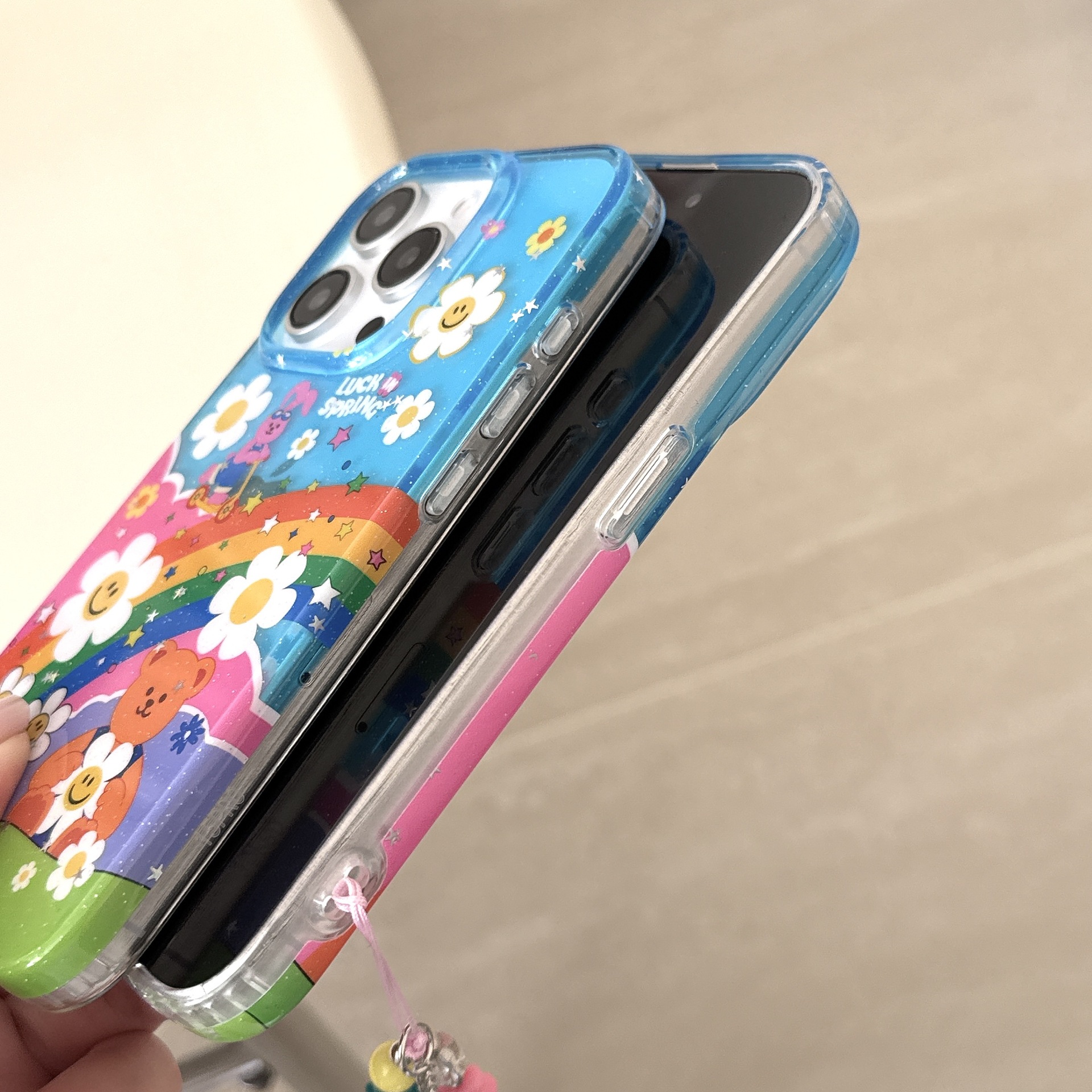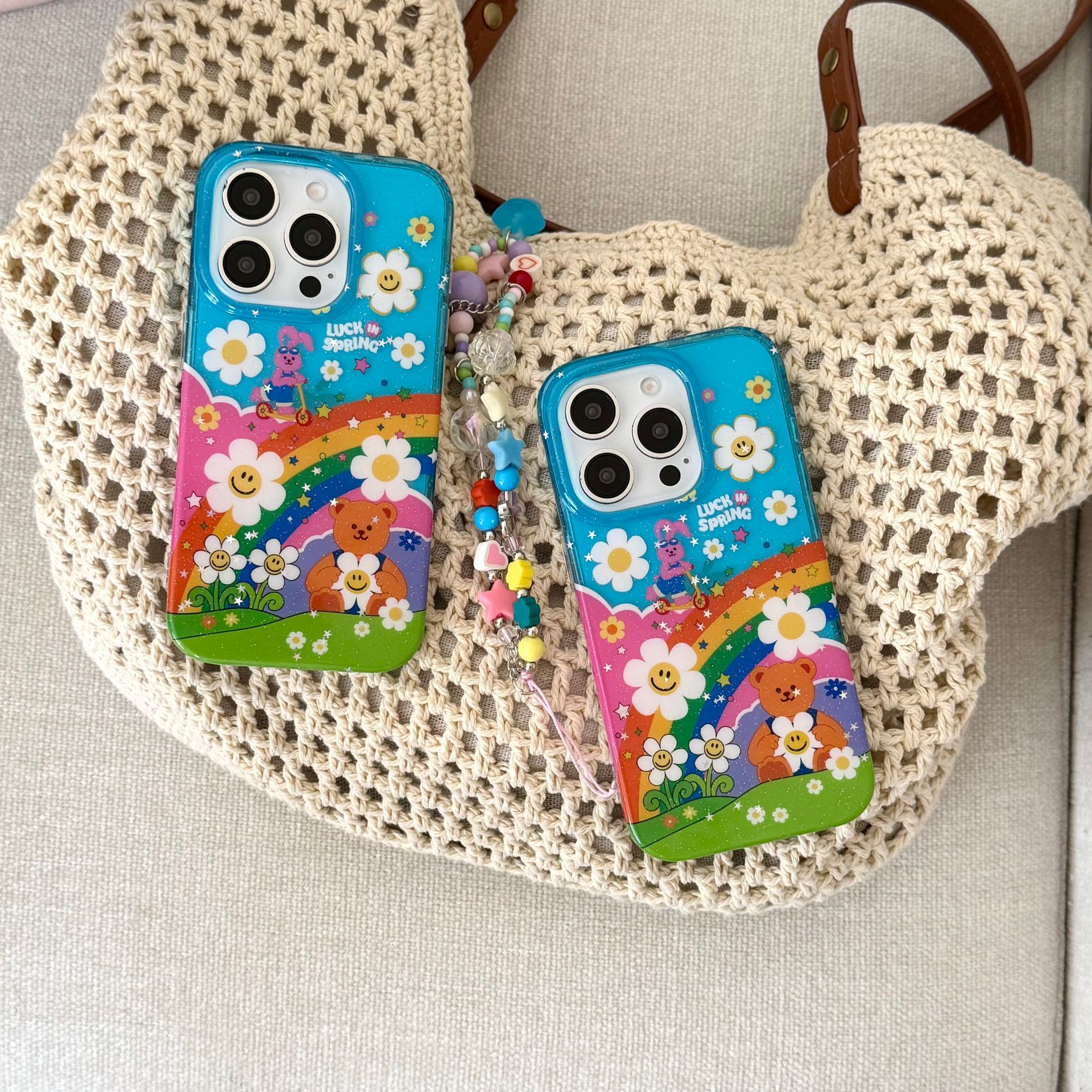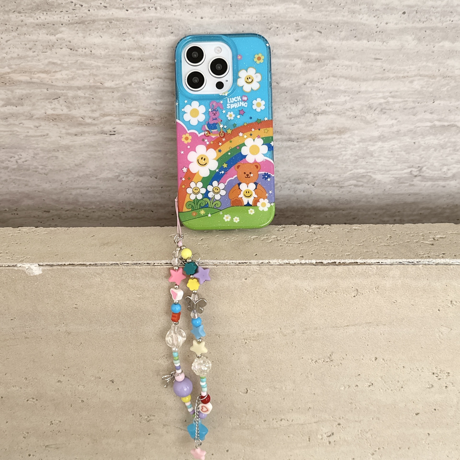 Capa única-sonriente flor oso arcoíris JY,Cadena sonriente flor oso arcoíris jy