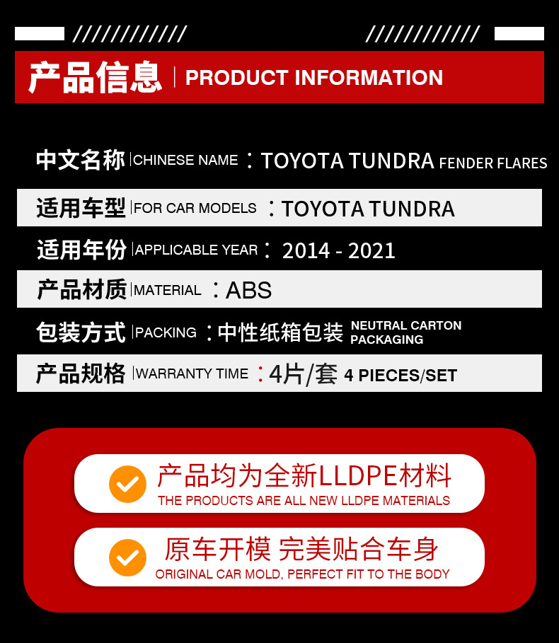 Fábrica al por mayor aplicable a TUNDRA Toyota Tantu 2014 ensanchó la ceja de la rueda de modificación de cuerpo ancho Fender flare