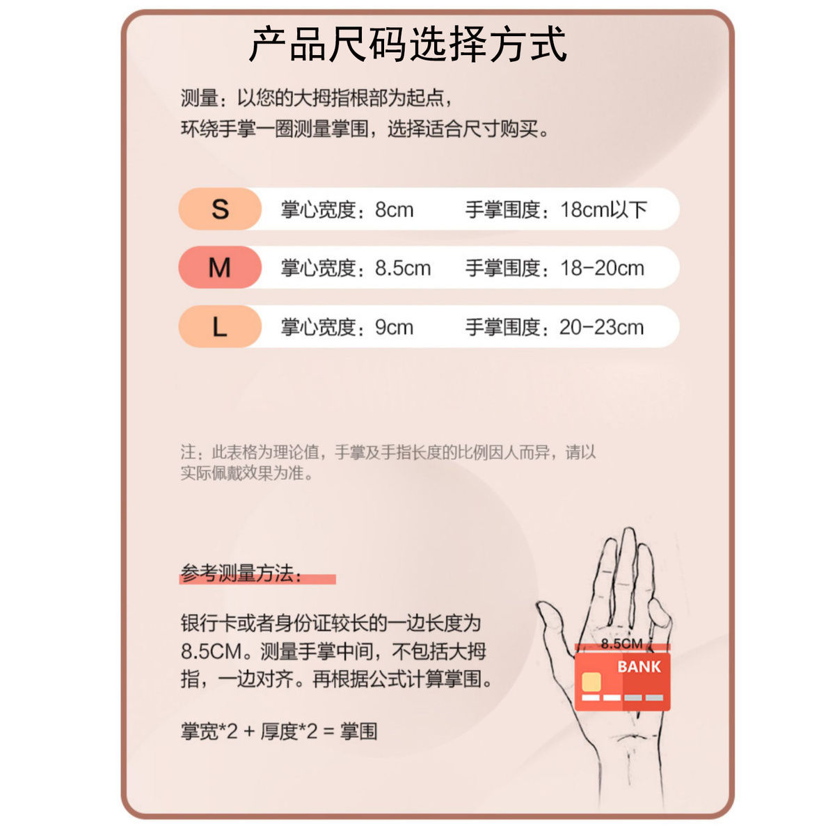 | Especificaciones | Código S [se recomienda que el perímetro de la palma sea inferior a 18 cm], Código M [se recomienda que el perímetro de la palma sea de 18 - 20 cm], Código L [se recomienda que el perímetro de la palma sea de 20 - 23 cm] |