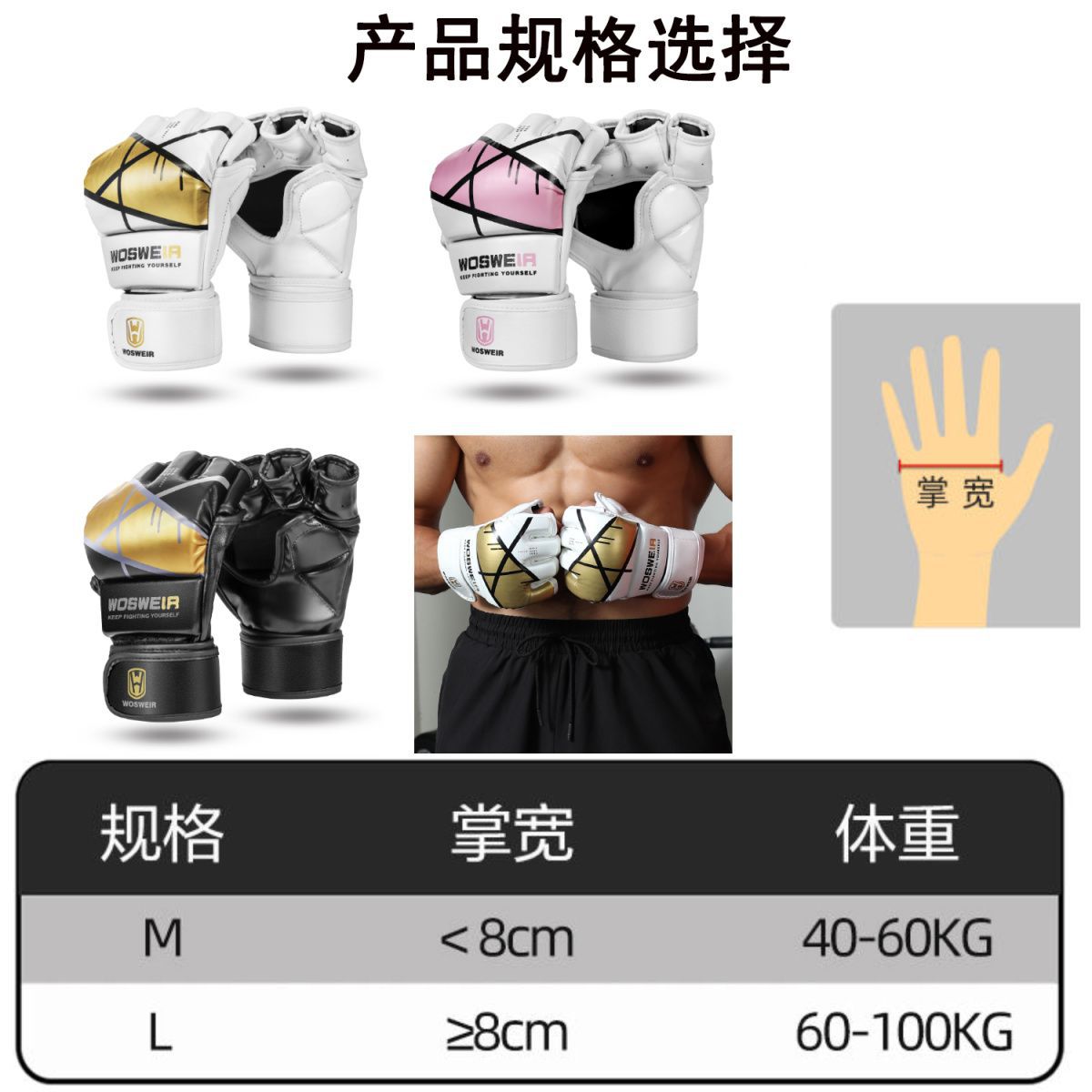 Guantes de medio dedo personalizados de procesamiento OEM Guantes de lucha de UFC Guantes de MMA Entrenamiento de combate Guantes de boxeo profesionales