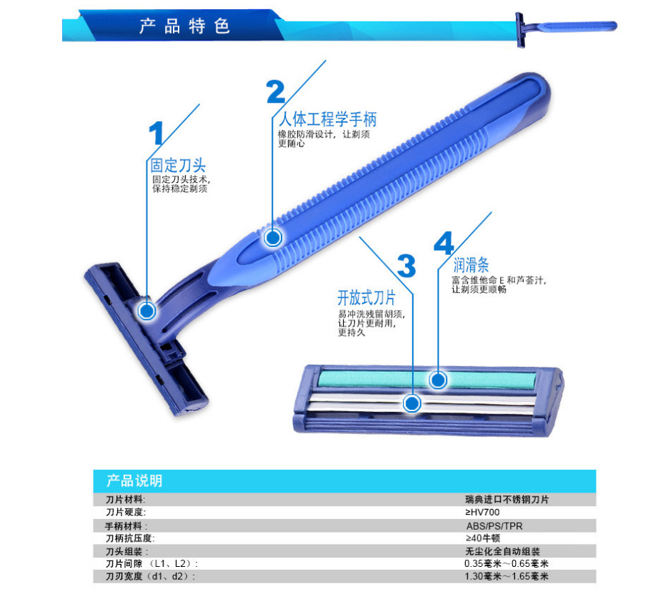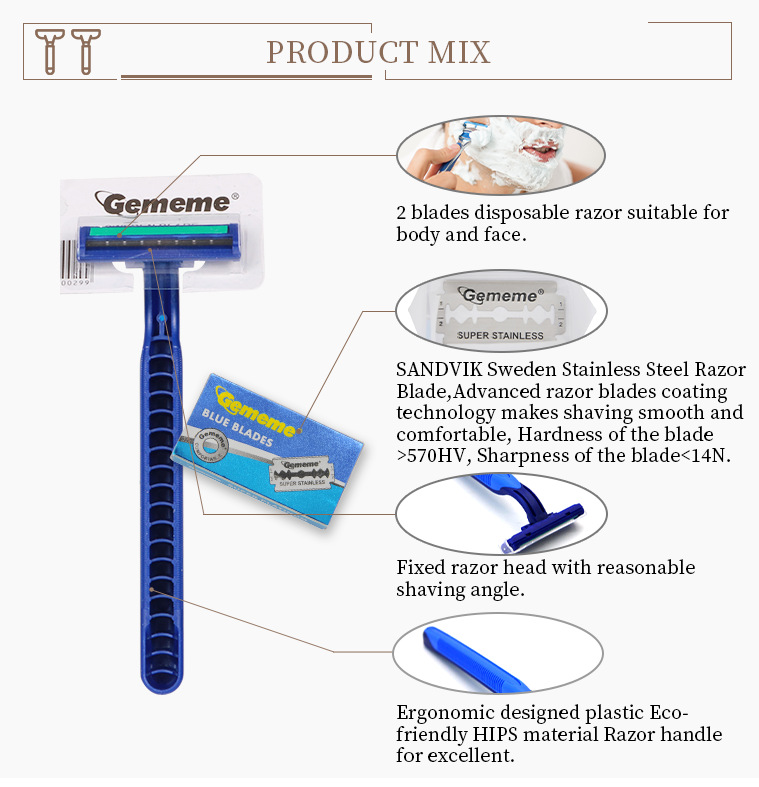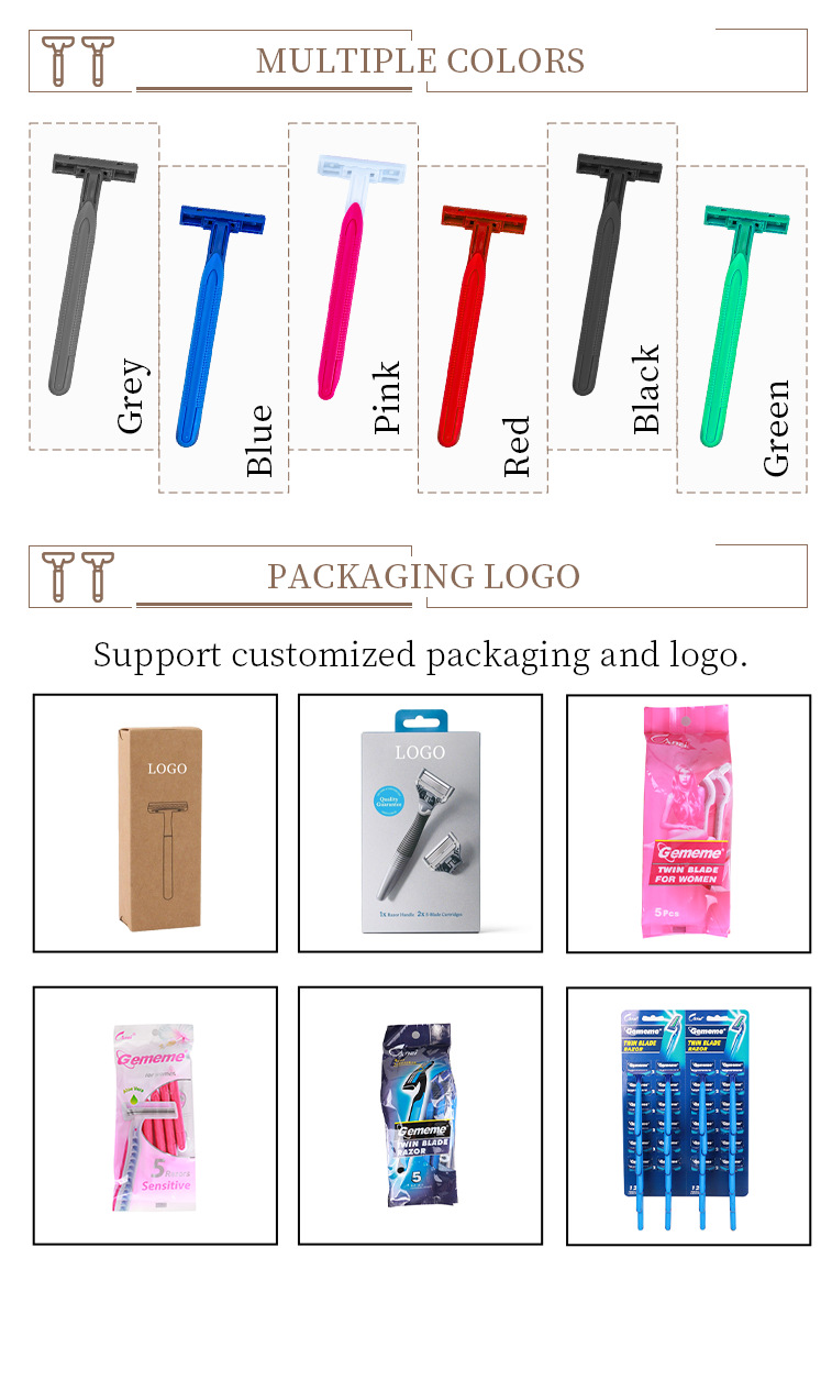 Maquinilla de afeitar manual desechable para hombre del fabricante, maquinilla de afeitar de acero inoxidable de dos capas, maquinilla de afeitar portátil de viaje con estuche colorido.