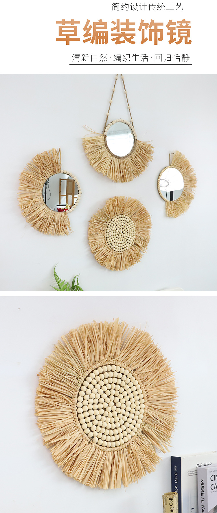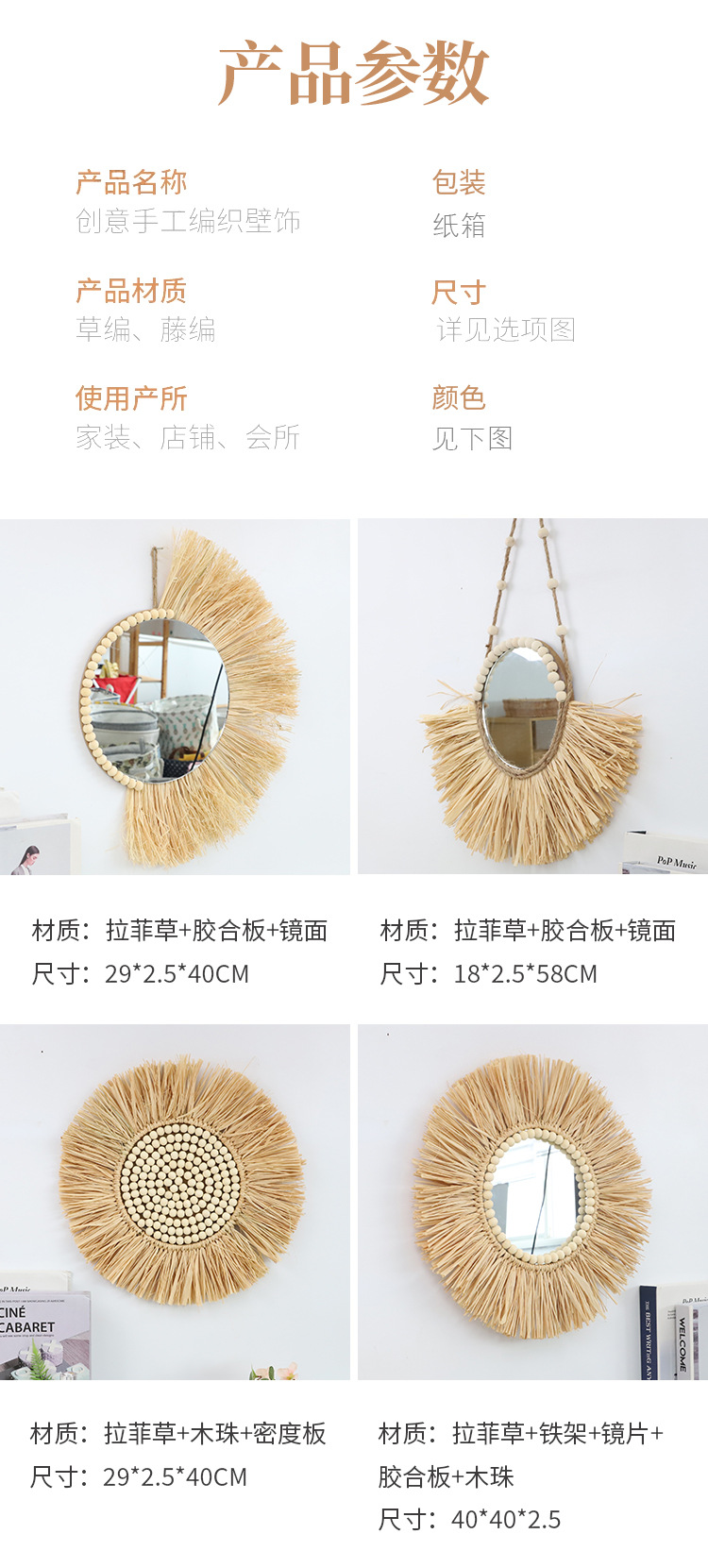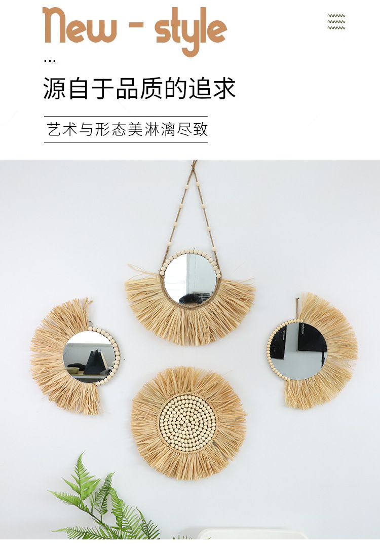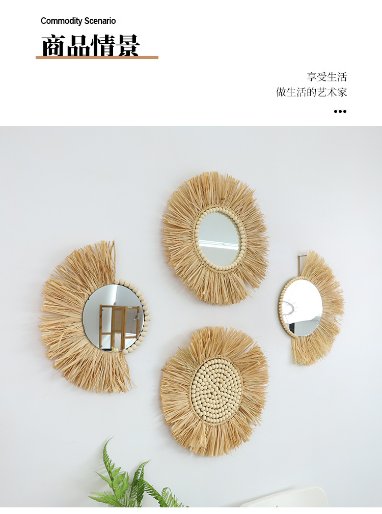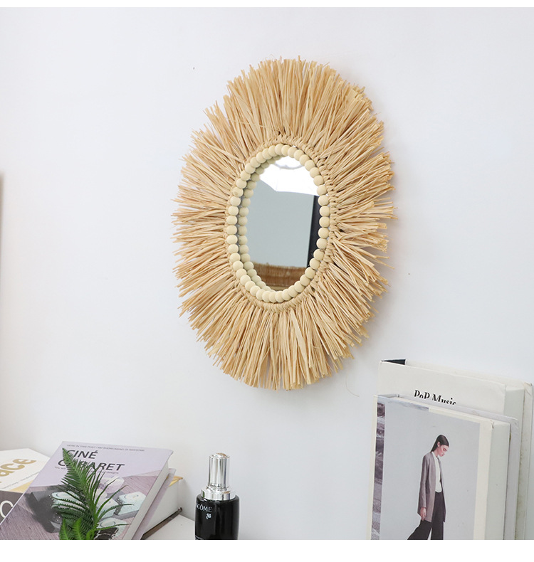 | Especificaciones | Espejo redondo Lafite,Cuentas de madera,Marco de madera,Espejo de ratán grueso diámetro 50 |