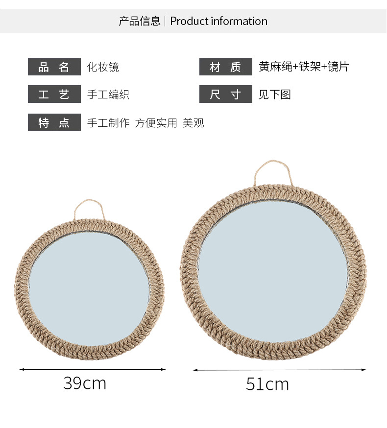 | Colores | Espejo decorativo de cuerda de cáñamo tipo A 39cm,Espejo colgante de maquillaje tipo B 50cm,Cuerda de cáñamo sin cuentas 29cm,Espejo decorativo de cuerda de cáñamo tipo C 43cm,Espejo de pétalos 60cm |