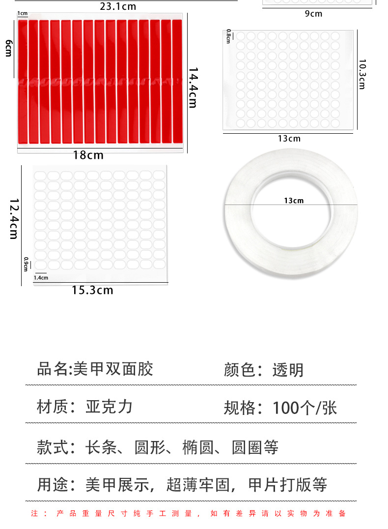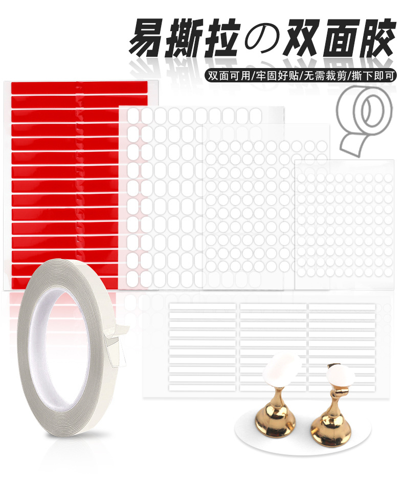 | Tipo de especificación | Pegamento Oval de doble cara [hoja única], pegamento Oval de doble cara [10 hojas / paquete], pegamento largo de doble cara [hoja única], pegamento de doble cara de punto [10 hojas / paquete], pegamento transparente de doble cara de círculo |