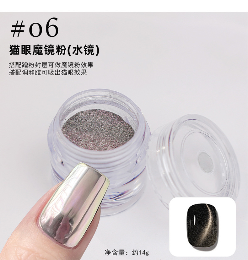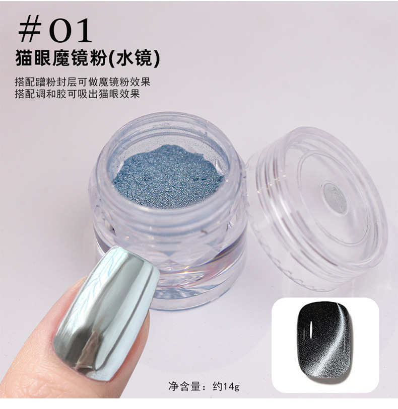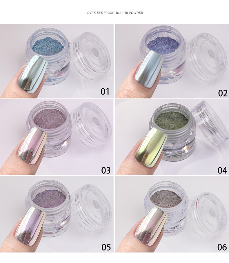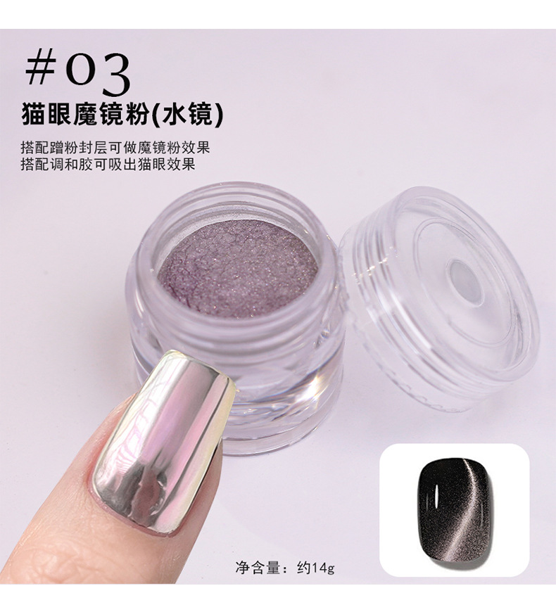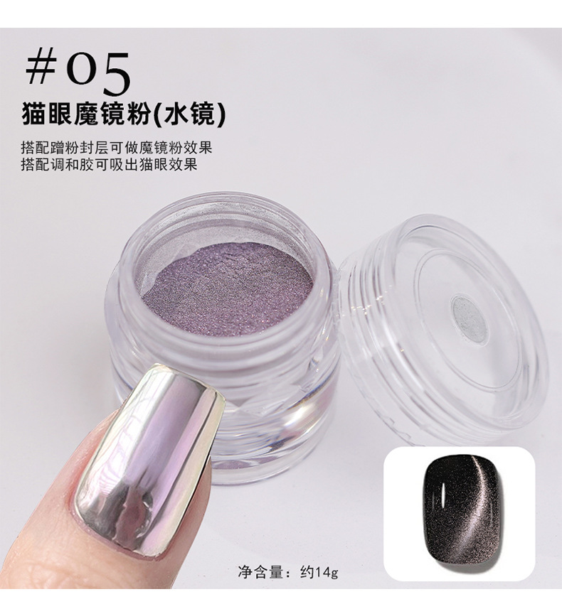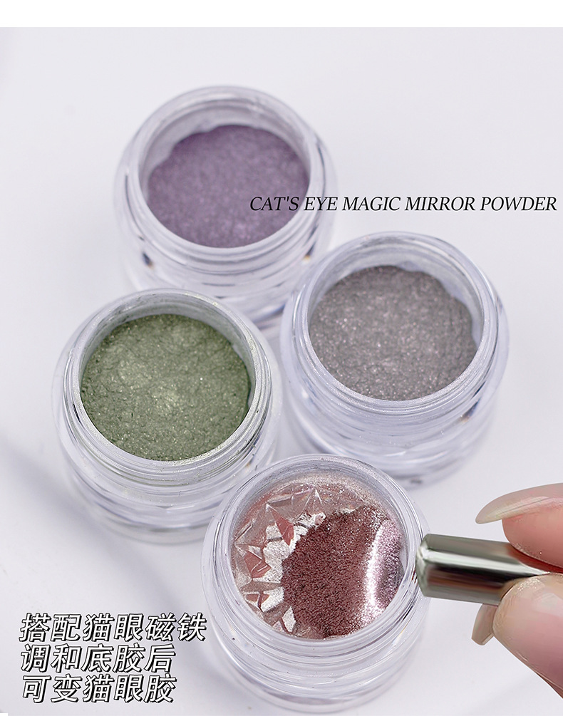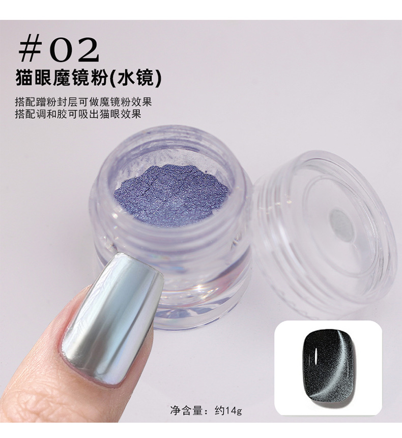 Espejo de explosión transfronteriza plata color púrpura ojo de gato espejo mágico de luz de la luna con espejo magnético frotar polvo de pegamento de uñas manicuras al por mayor