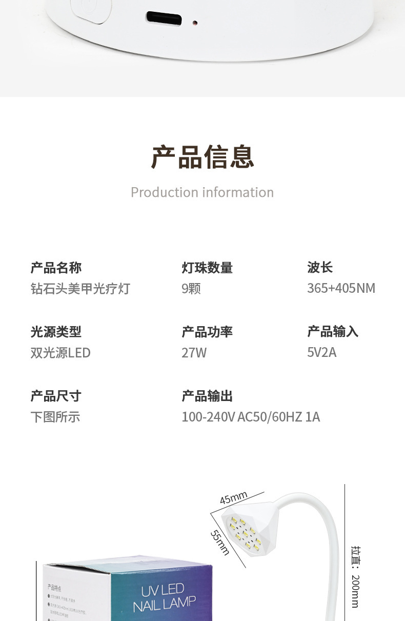 | Modelo | Lámpara de terapia de luz de manicura con cabeza de diamante |