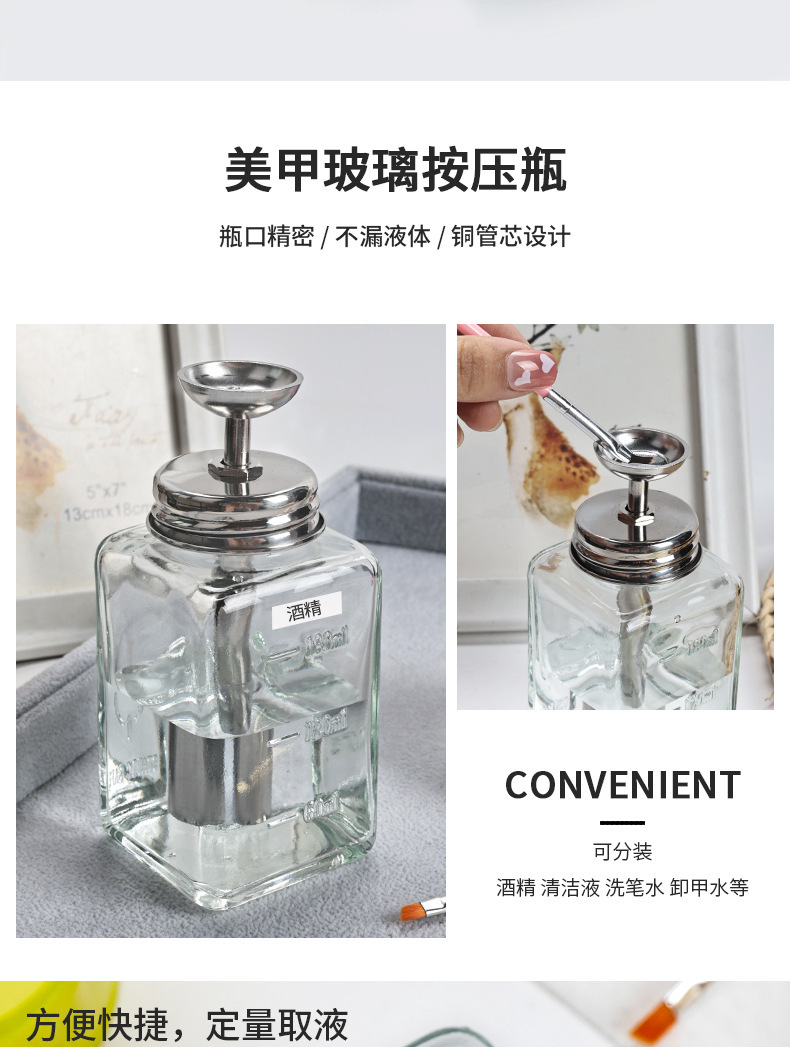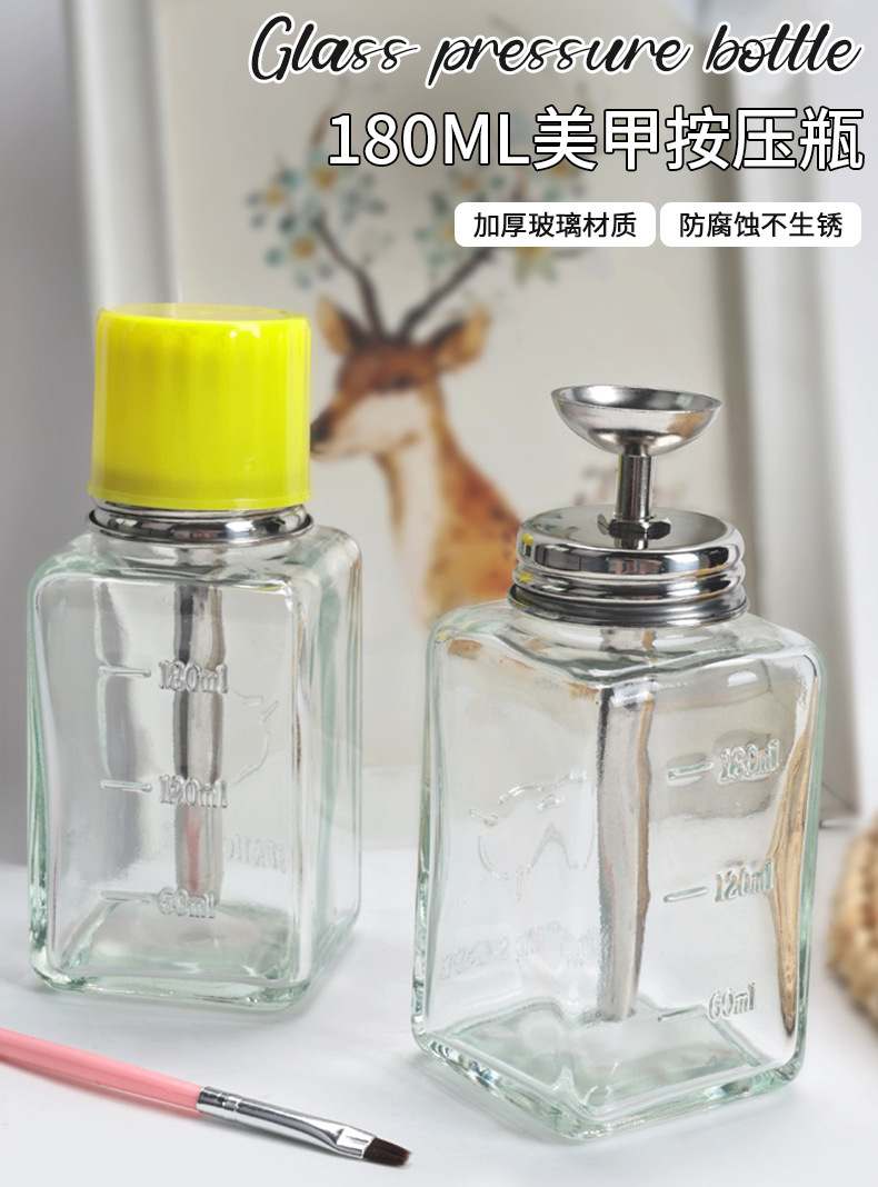 | Número de artículo | Botella de prensado de vidrio de manicura 180ml |