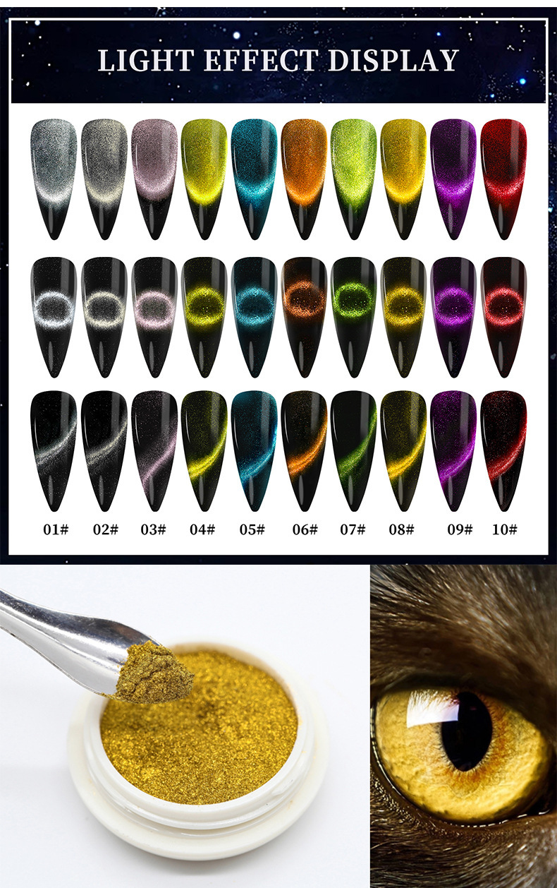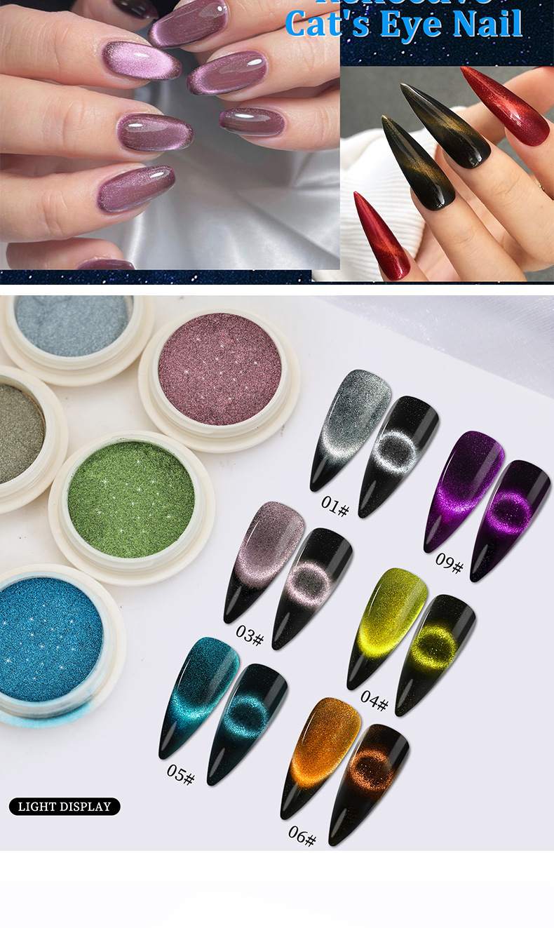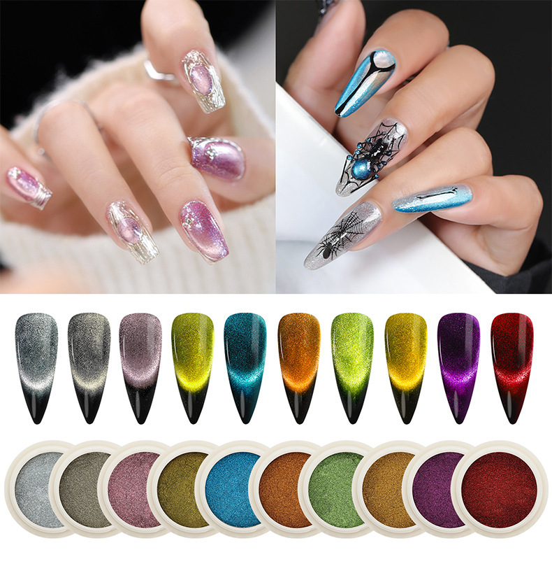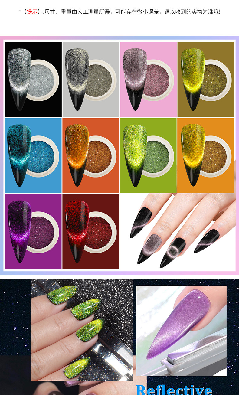 跨境专供美甲魔镜粉固态魔镜粉 不飞粉闪粉猫眼磁粉超亮