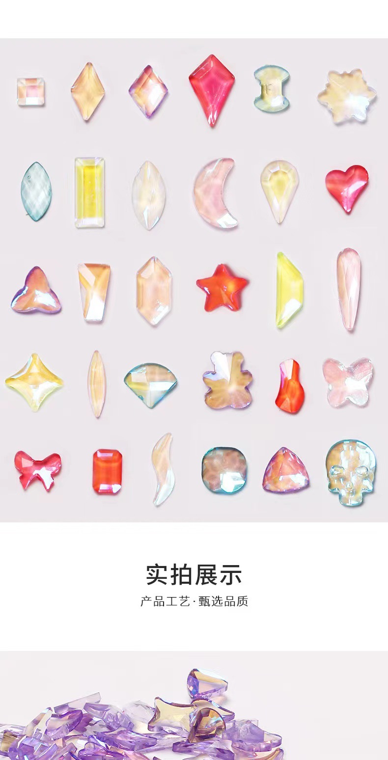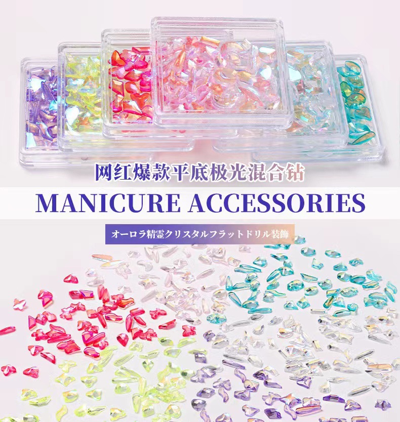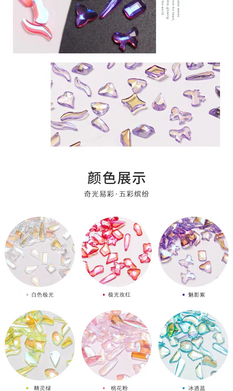 网红超闪异形美甲钻mini小号平底钻 超闪湖蓝浅蓝极白指甲钻饰品