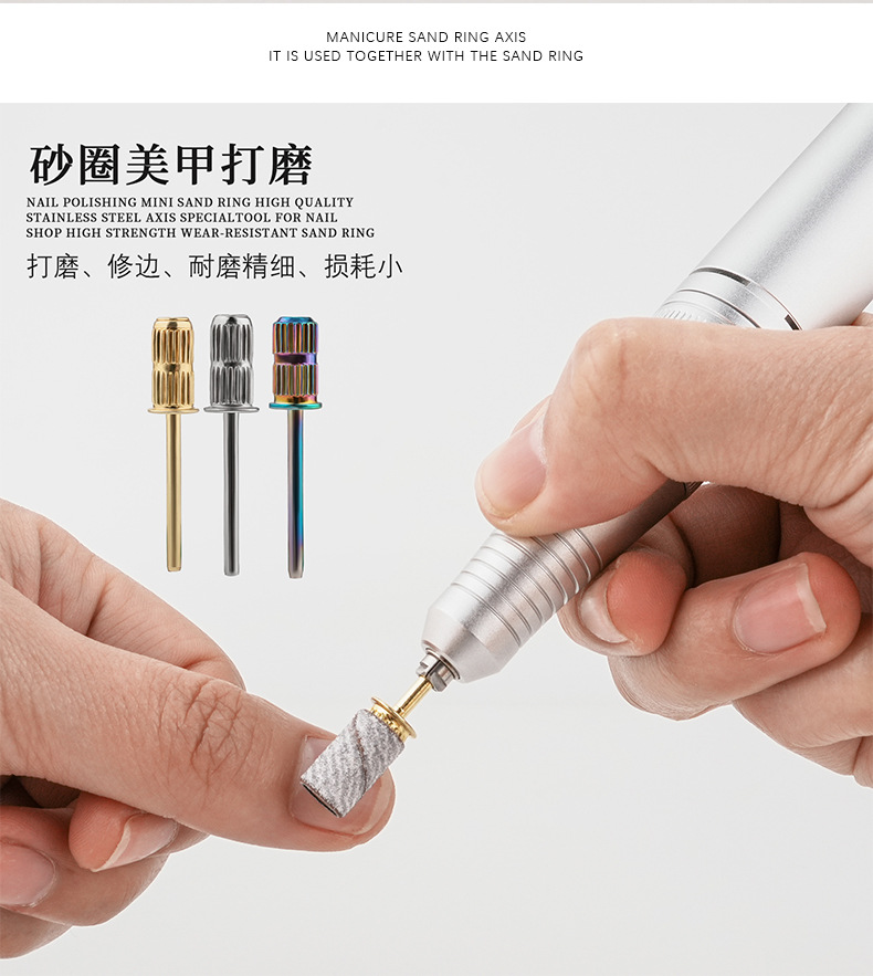 | Eje de anillo de arena para uñas | Mini cabezal de pulido de eje de anillo de arena de 3.0mm, herramienta de manicura de diámetro pequeño |