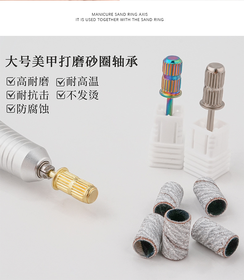 | Eje de acero inoxidable | Cojinete de anillo de arena de uñas Cabeza de lijado de uñas Eje de anillo de arena |