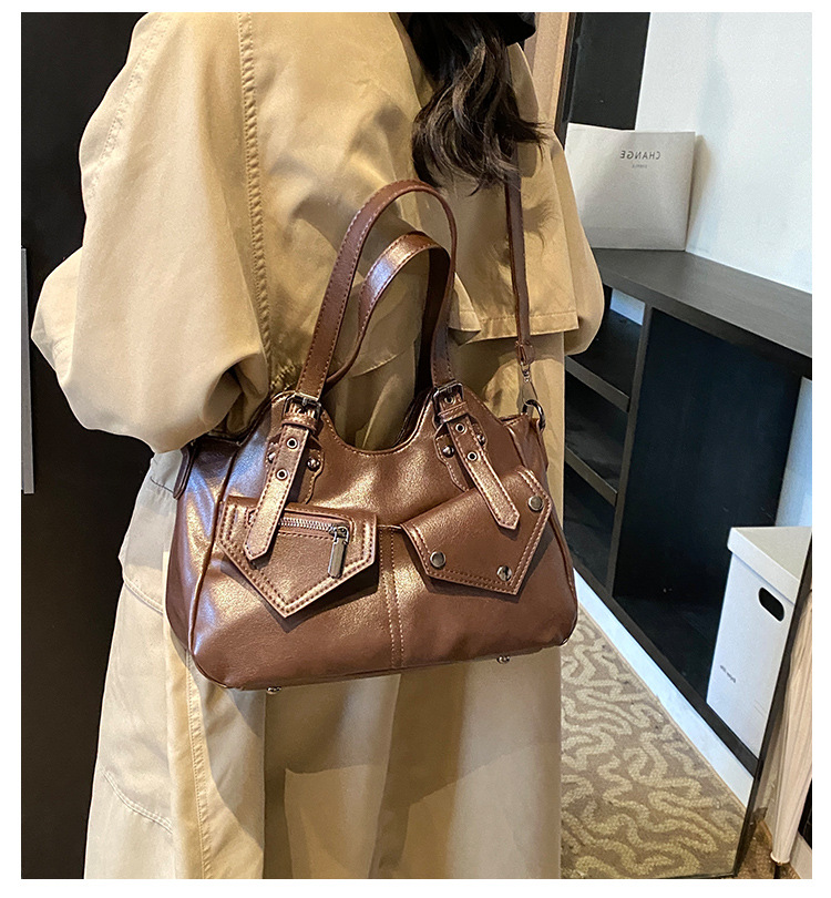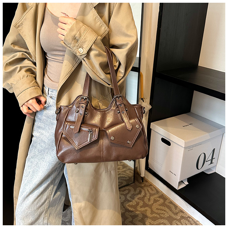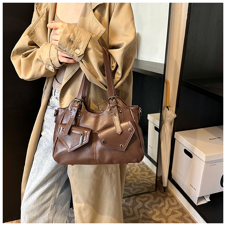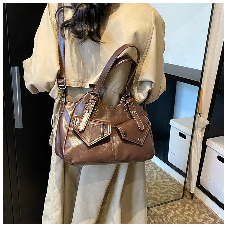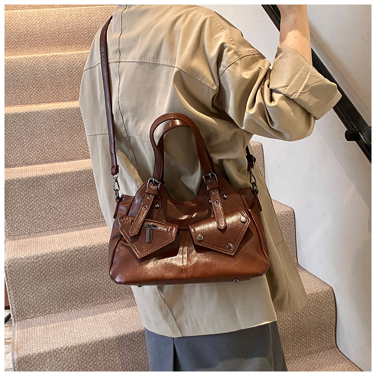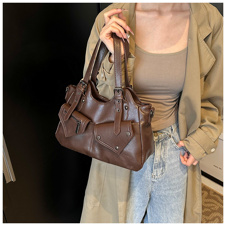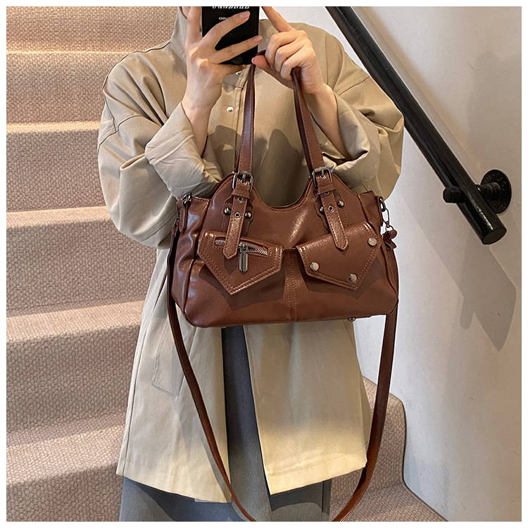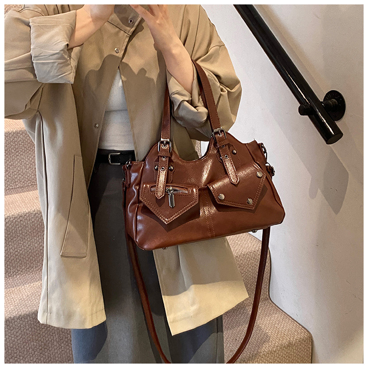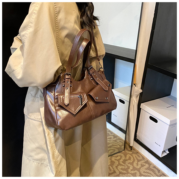 Bolso de alta capacidad retro europeo y americano 2024 nuevo bolso de mensajero portátil con costuras bolso femenino bolso de axila de cuero suave simple