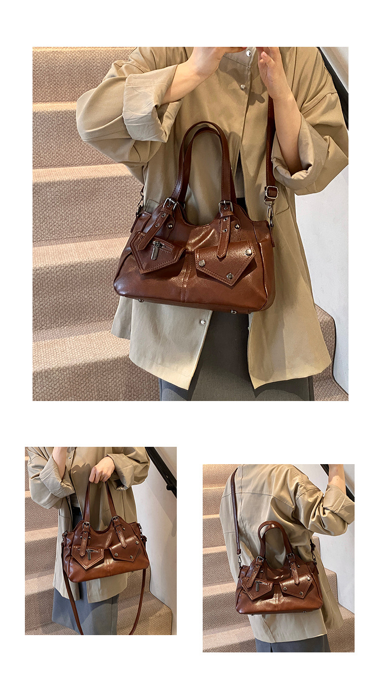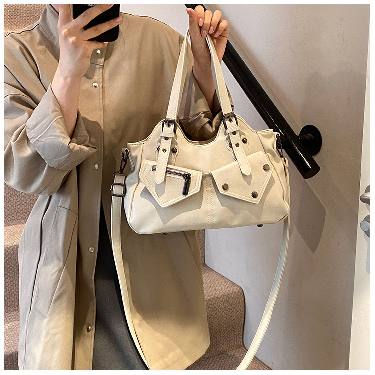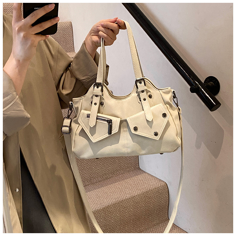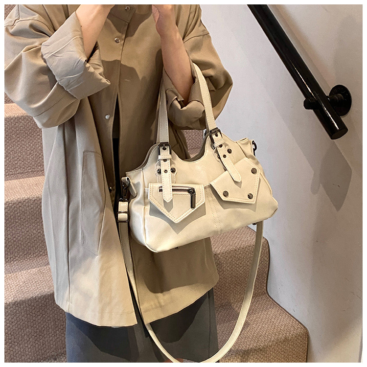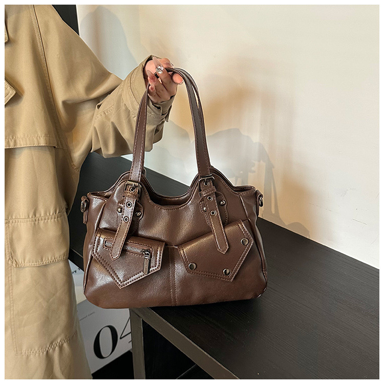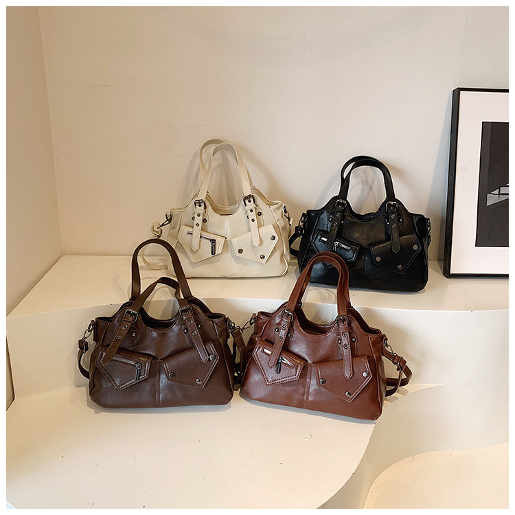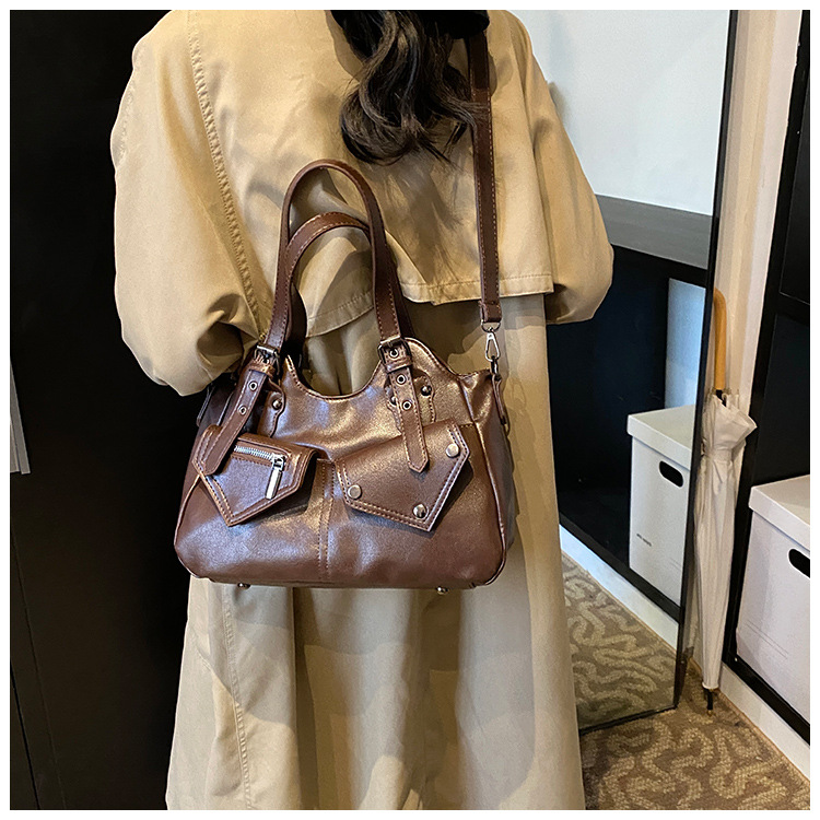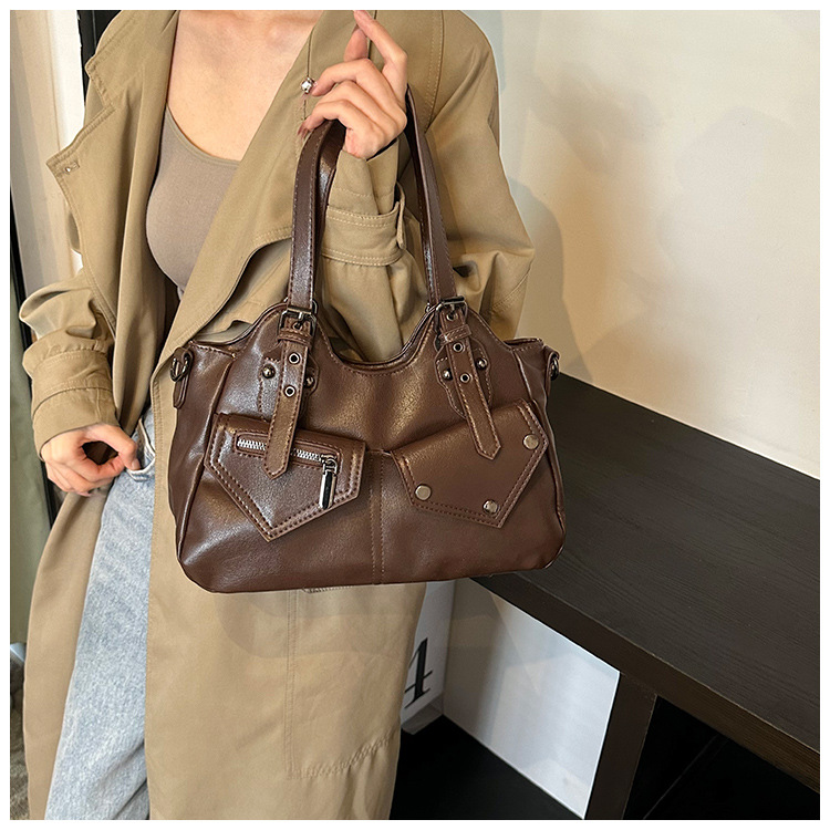 Bolso de alta capacidad retro europeo y americano 2024 nuevo bolso de mensajero portátil con costuras bolso femenino bolso de axila de cuero suave simple
