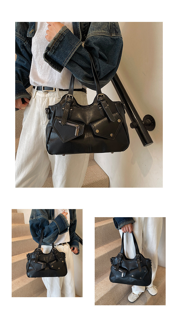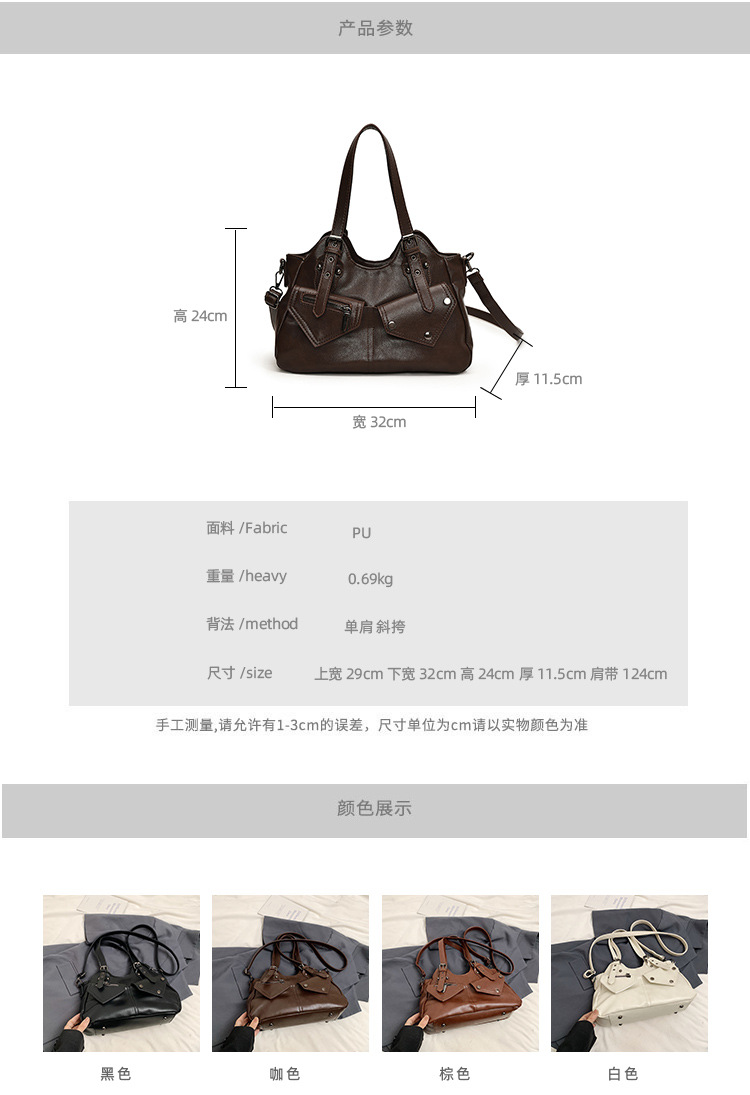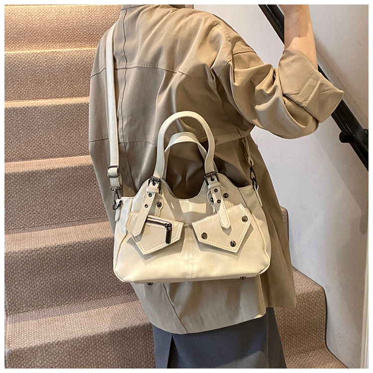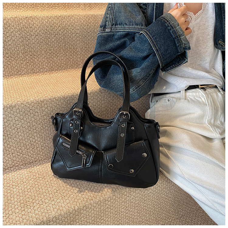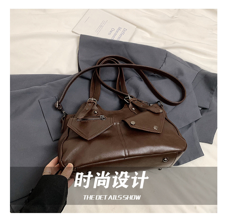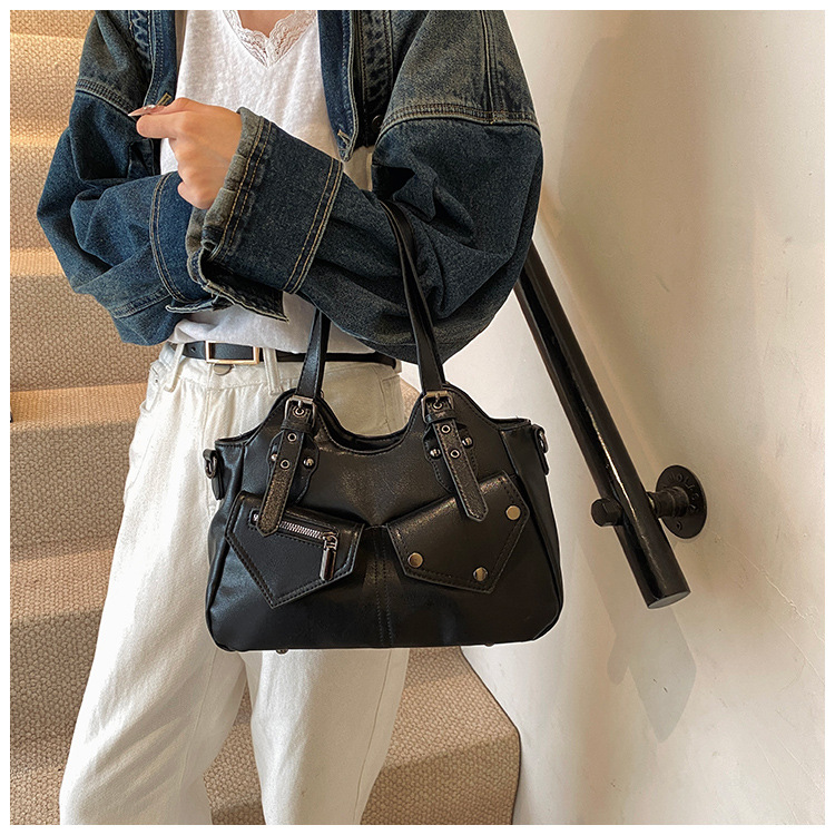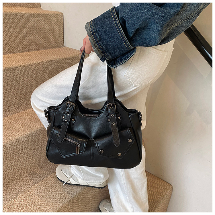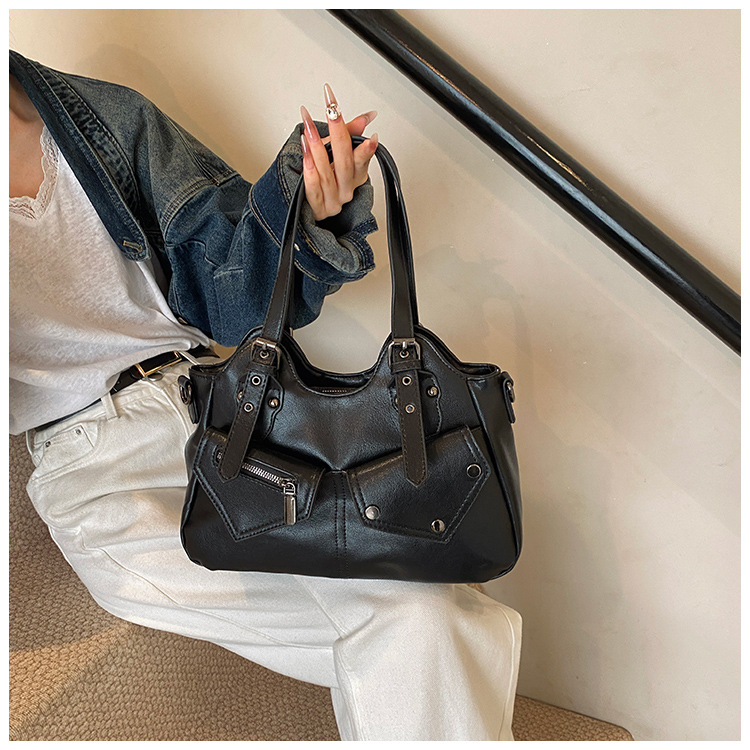 Bolso de alta capacidad retro europeo y americano 2024 nuevo bolso de mensajero portátil con costuras bolso femenino bolso de axila de cuero suave simple