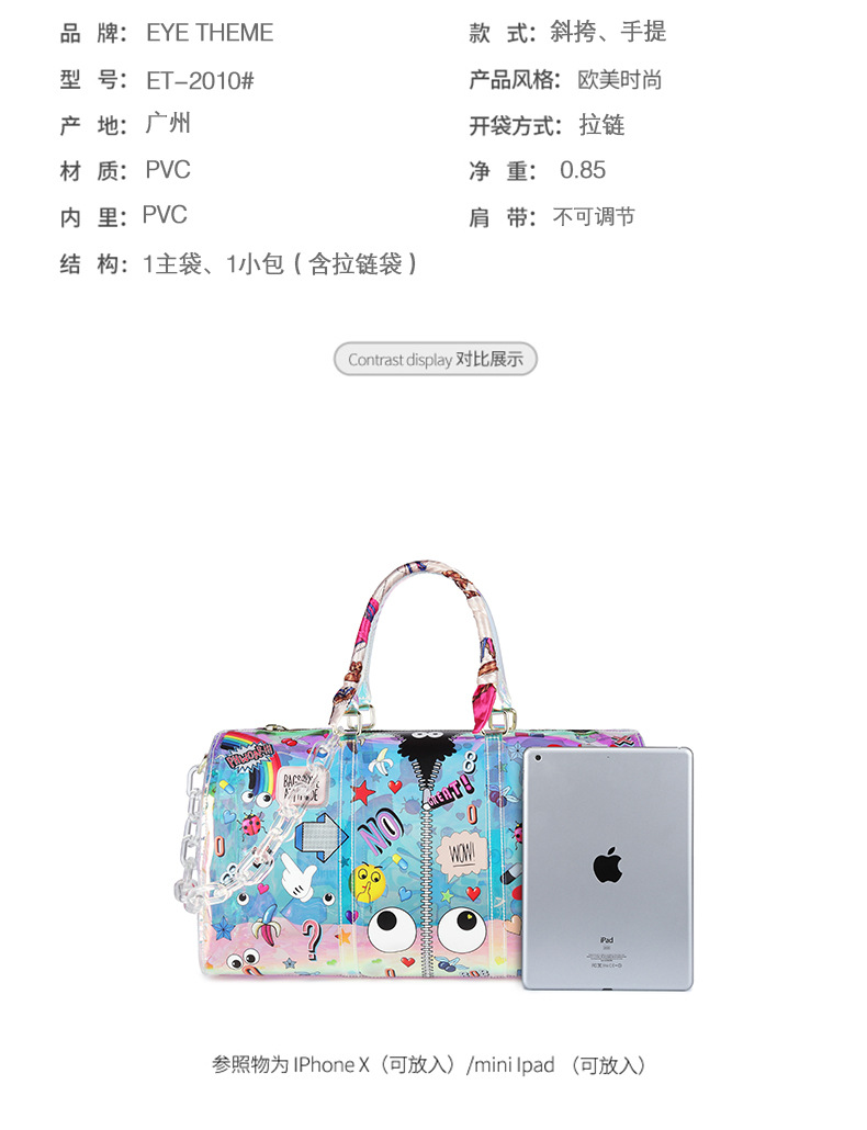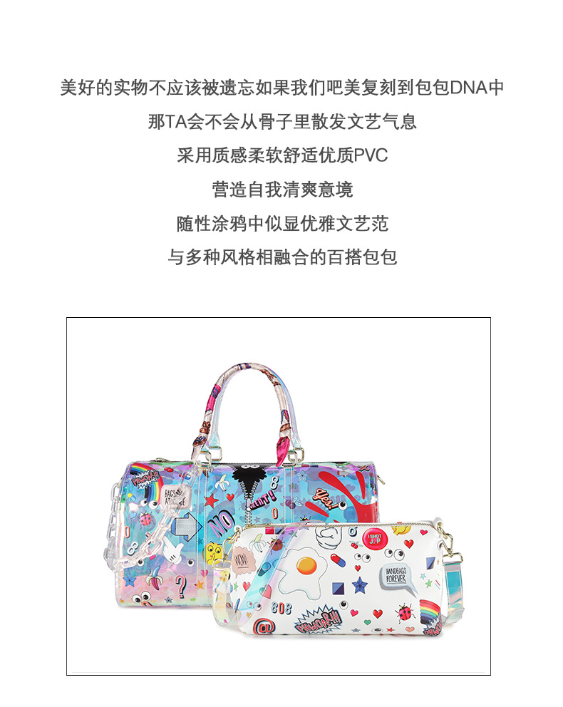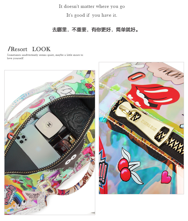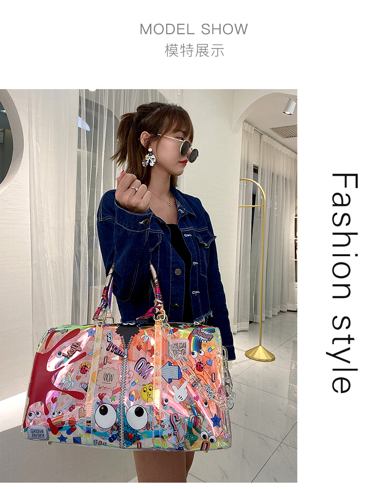 Gran capacidad de viaje bolsa de almacenamiento personalizada crossbody bolsa unisex moda jalea láser bolsa impresa estudiante bolsa