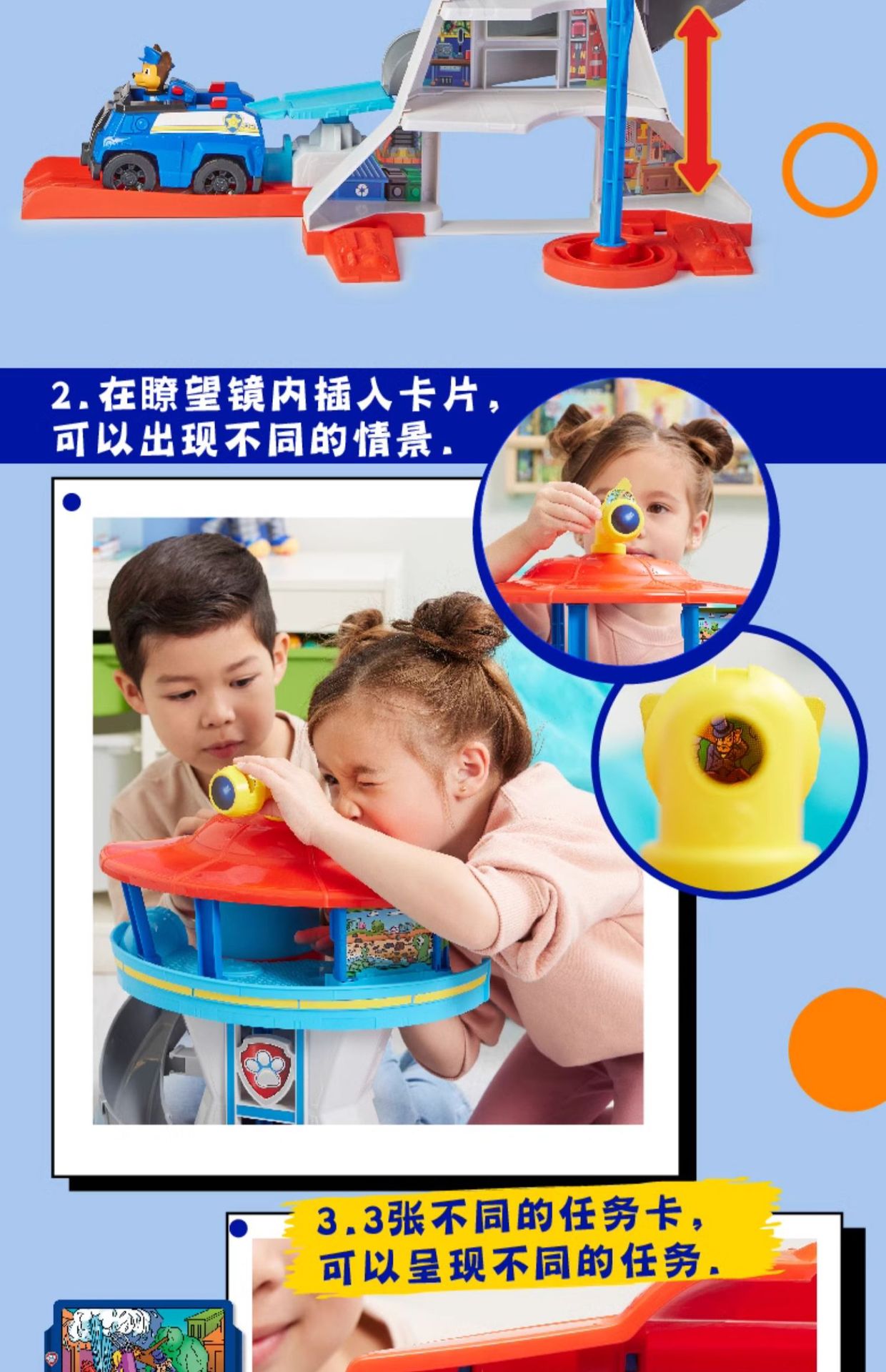 El equipo de la guarnición de la torre de vigilancia de sonido y luz de la sede de la patrulla, muñeca Archie, coche de policía, regalo de juguetes.