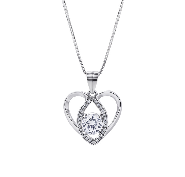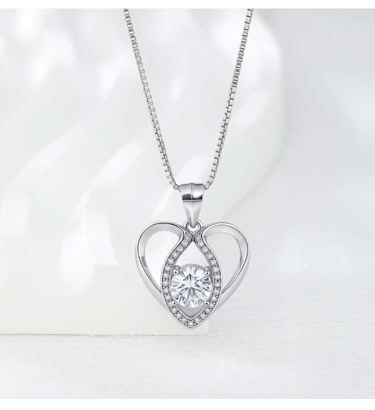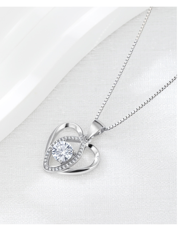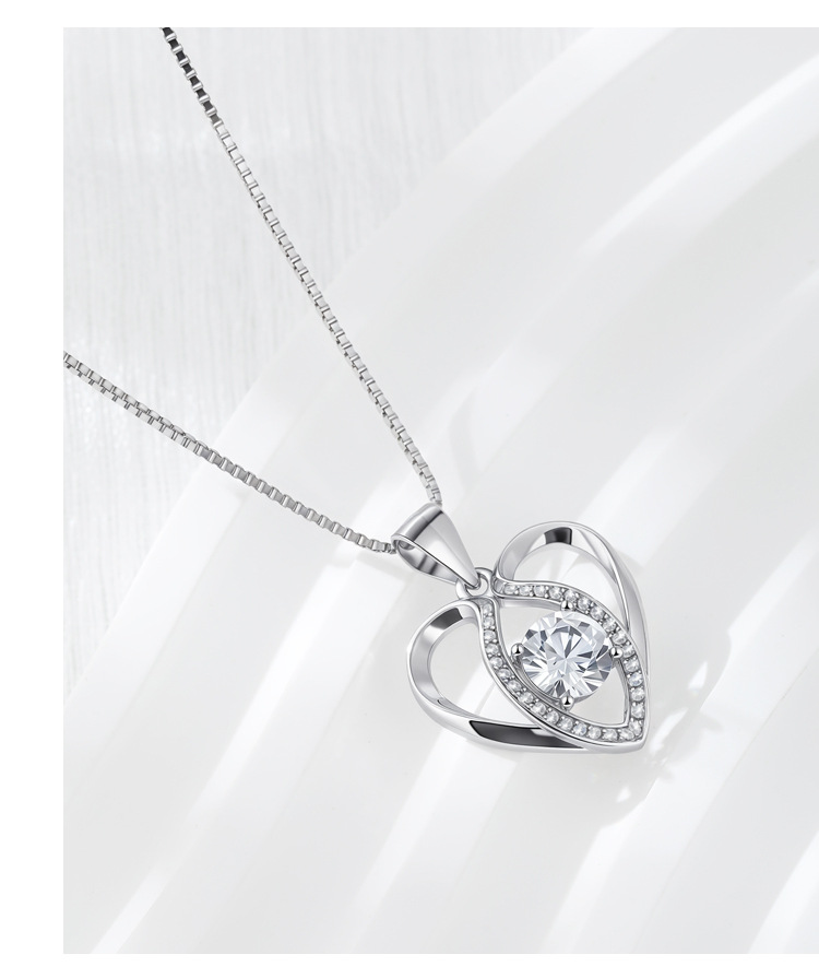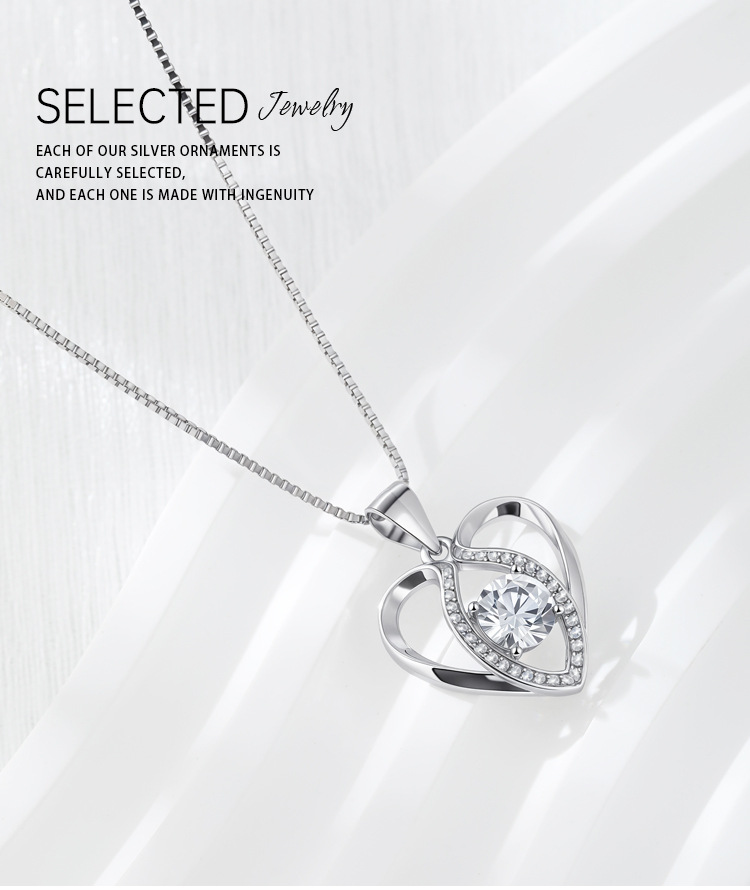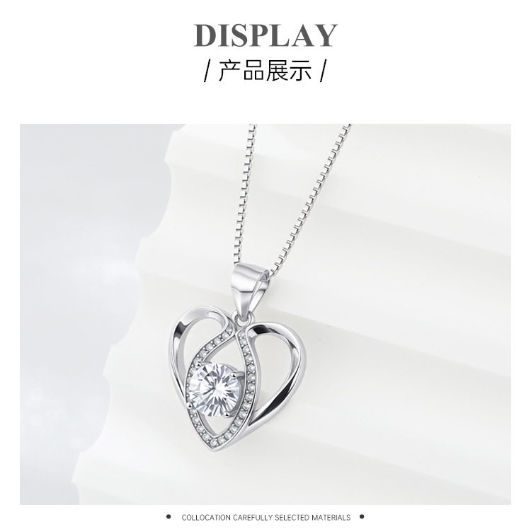 S925 collar de corazón de plata de ley colgante en forma de corazón de diamante simple femenino bloqueo europeo y americano cadena de hueso de moda salvaje al por mayor