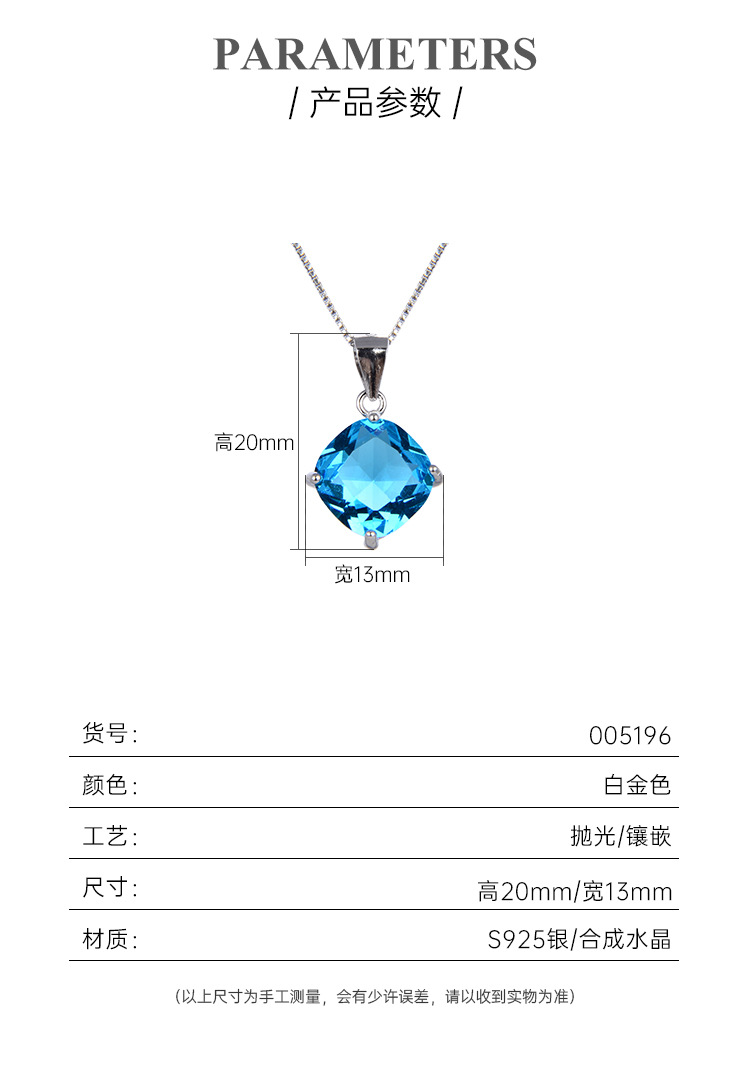 | Color | Colgante de diamante azul 005196 + 08 caja de cadena de 16 pulgadas + 5cm de extensión de oro blanco L047 |