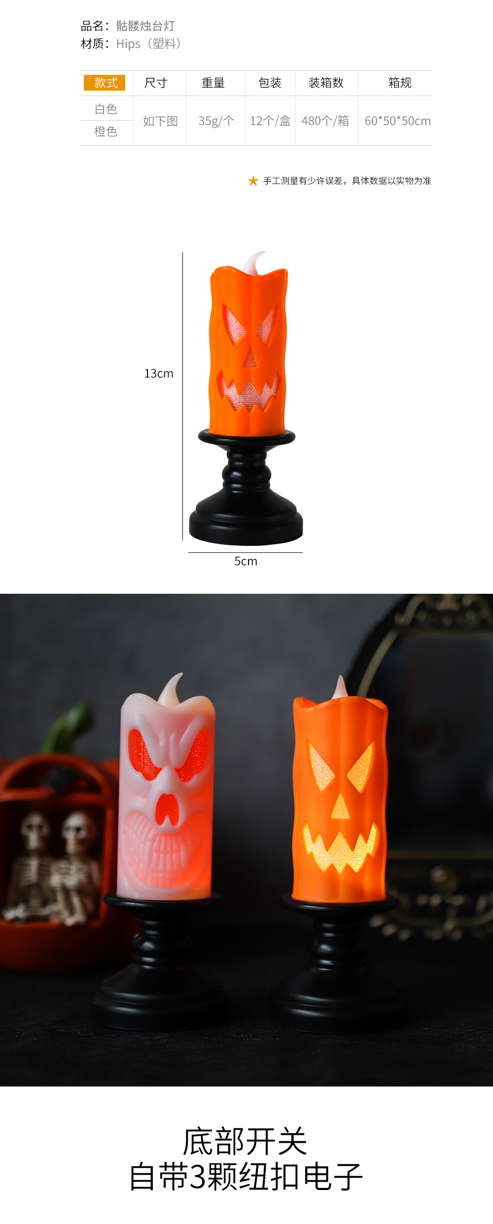 | Color | Lámpara naranja de la vela del cráneo,Lámpara blanca de la vela del cráneo |