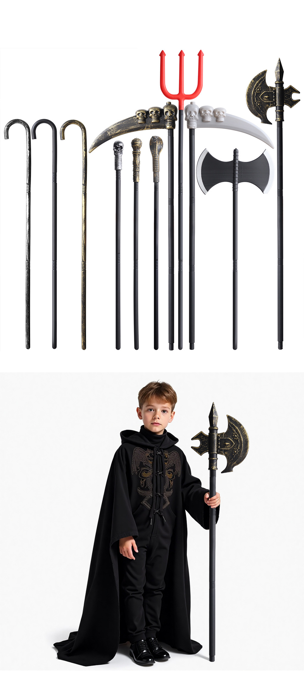 | Color | Tríferos, hoce, cuchillo de cobra, hacha de un solo lado, bastón mágico, bastón de cobra, bastón de cráneo, bastón negro, bastón dorado pintado, bastón plateado pintado, hacha de dos caras, cuchillo de cobra pintado |