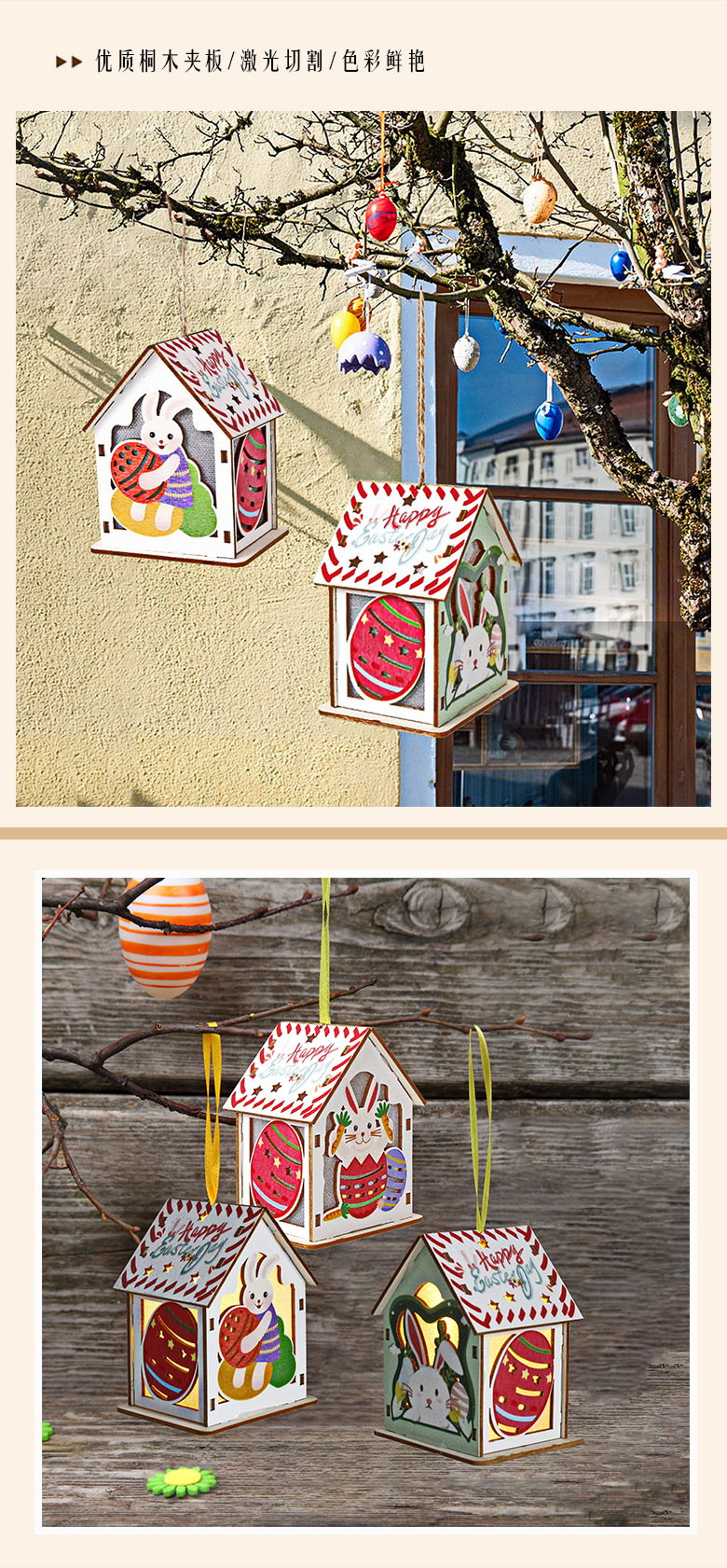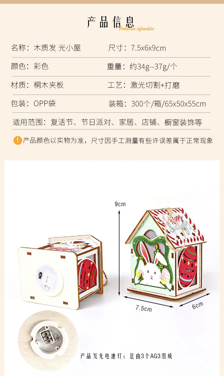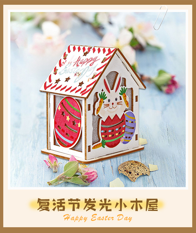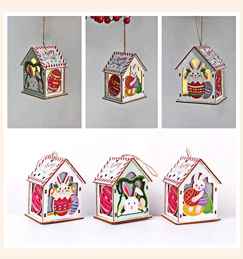 Cottage de Pascua transfronteriza creativa de dibujos animados huevos de conejo luminoso casa pequeña colgante artesanía de madera iluminación