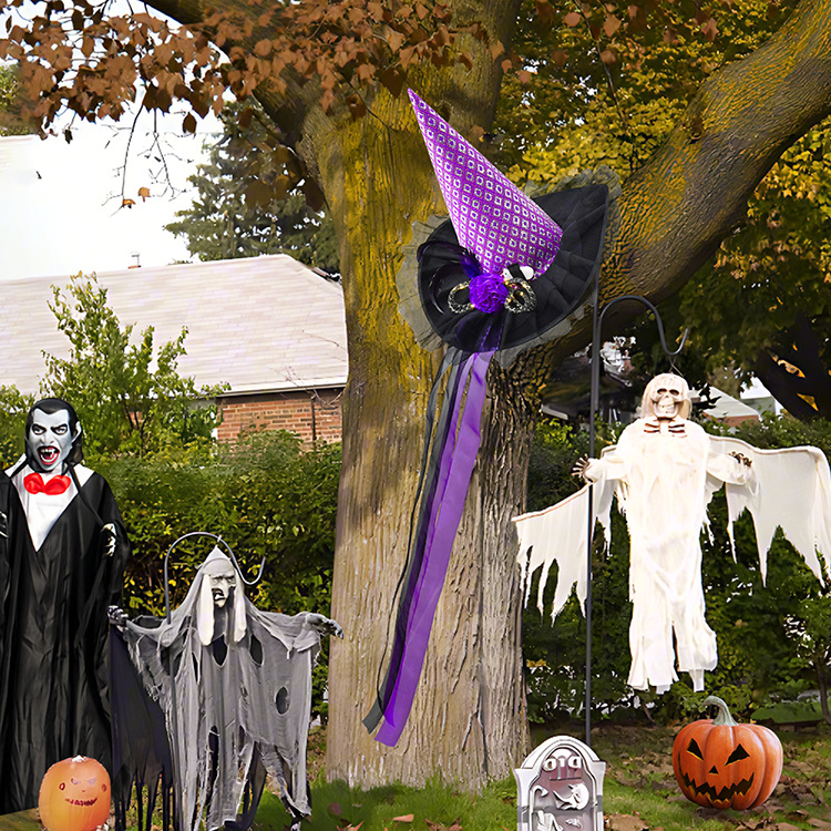 Transfronterizo Halloween encaje banda de cabello retrógrada francesa gran sombrero de bruja Halloween fantasma banda de fiesta vestido