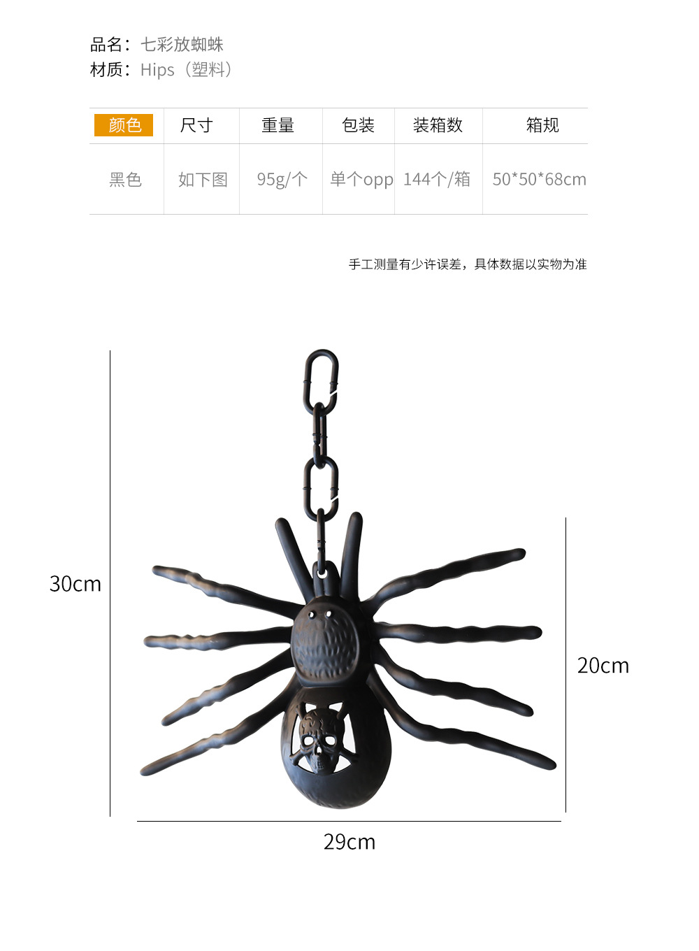 | Color | Plástico luminoso gran araña |