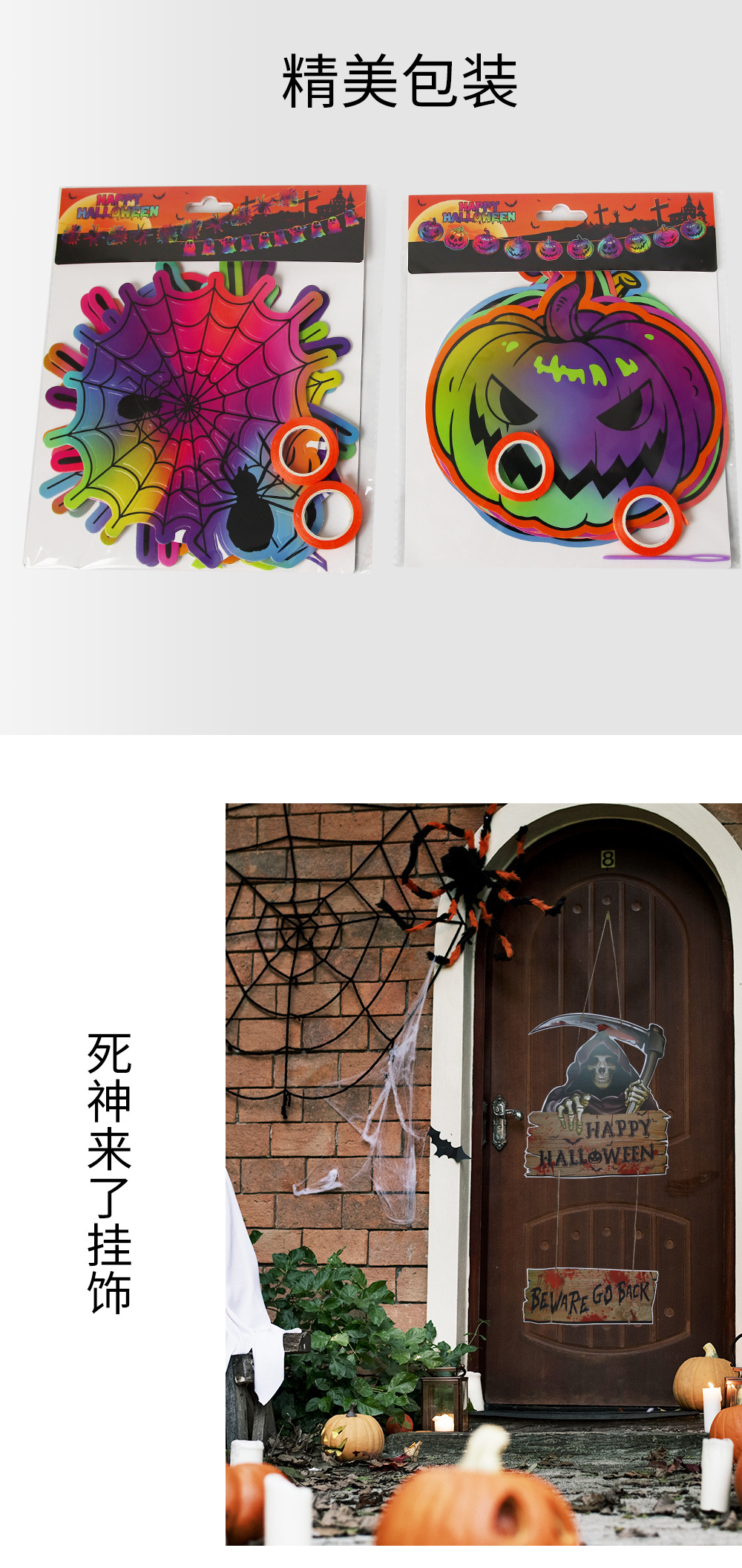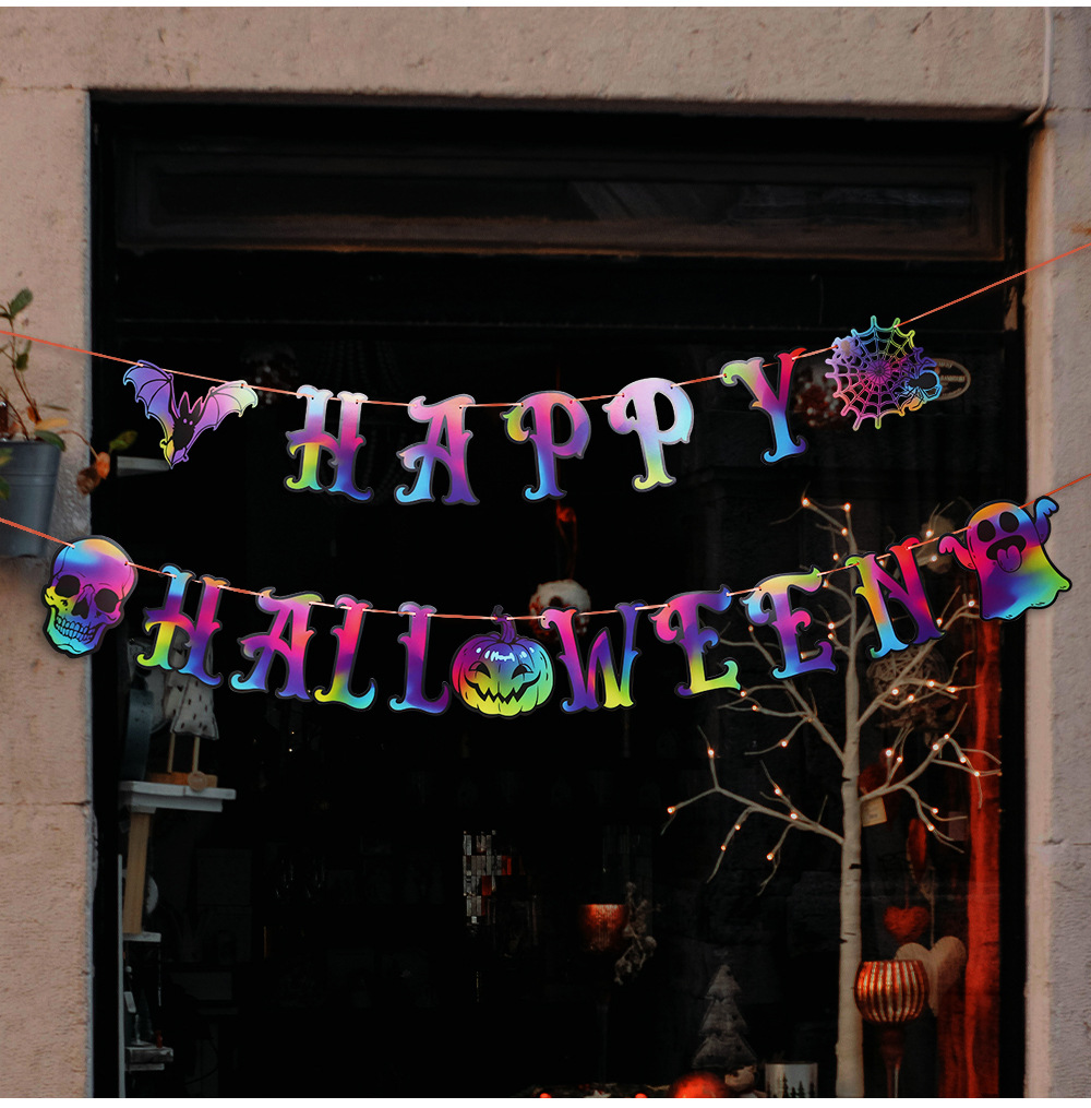 | Colores | Cartas coloridas banderas de Halloween,Gradiente plateado de Halloween,Esqueleto colorido,Bandera de calabaza colorida,Bandera de tiro fantasma colorido,Araña colorida tira de la bandera,Colgante de la hoz de la muerte,Colgante de pie de calabaza con sombrero de bruja |