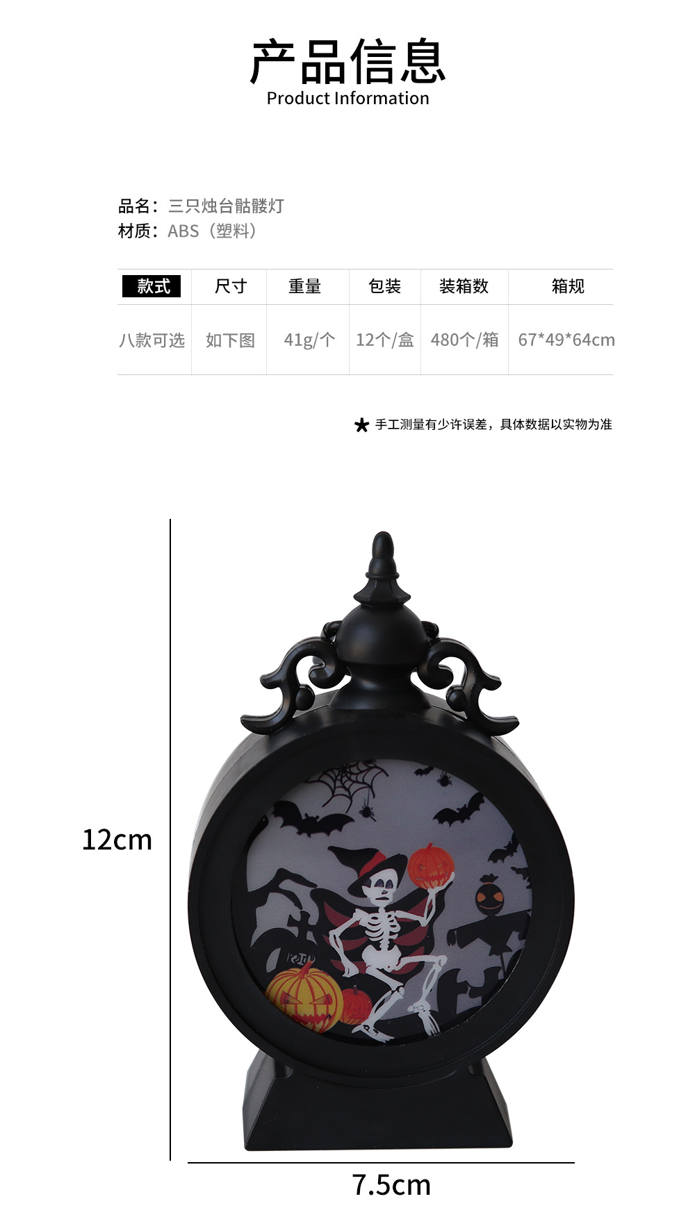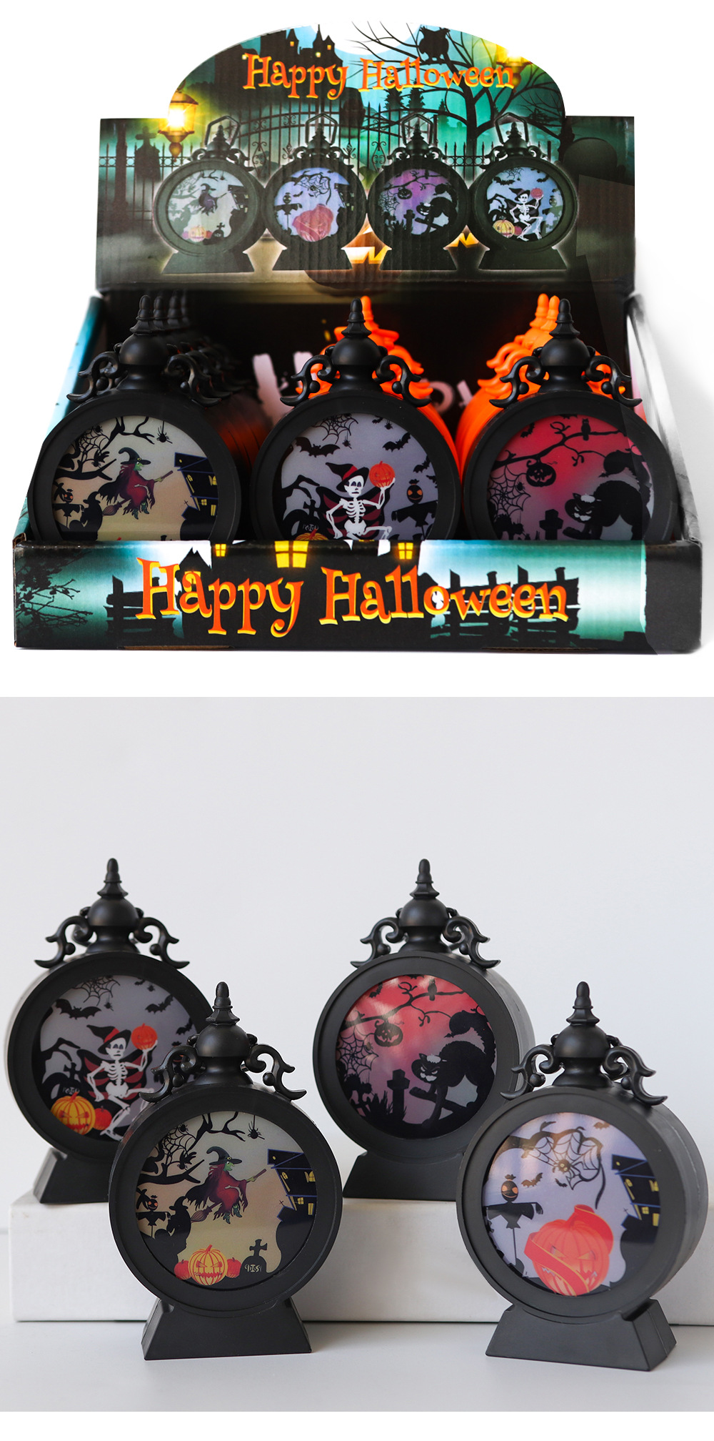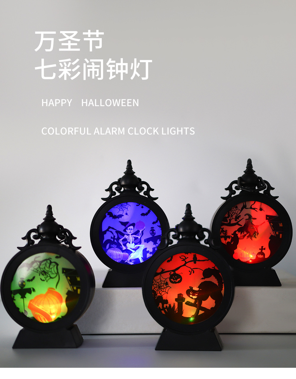 | Color | Lámpara de despertador de esqueleto, lámpara de despertador de gato negro, lámpara de despertador de calabaza, lámpara de despertador de bruja, lámpara de despertador de triángulo naranja, lámpara de despertador de miedo naranja, lámpara de despertador de pico W naranja, lámpara de despertador de cara sonriente naranja, lámpara de anillo 24 cajas por caja |