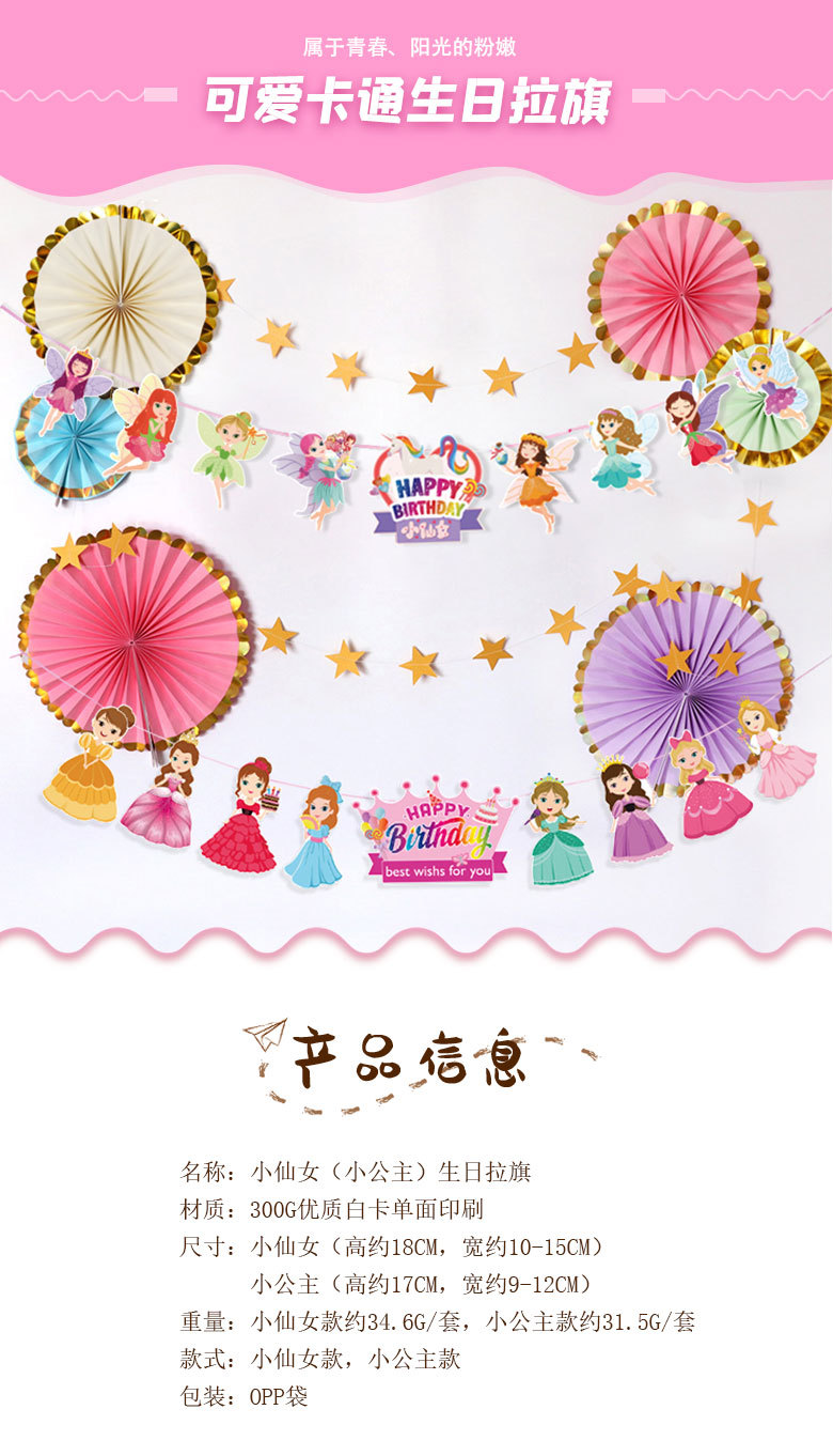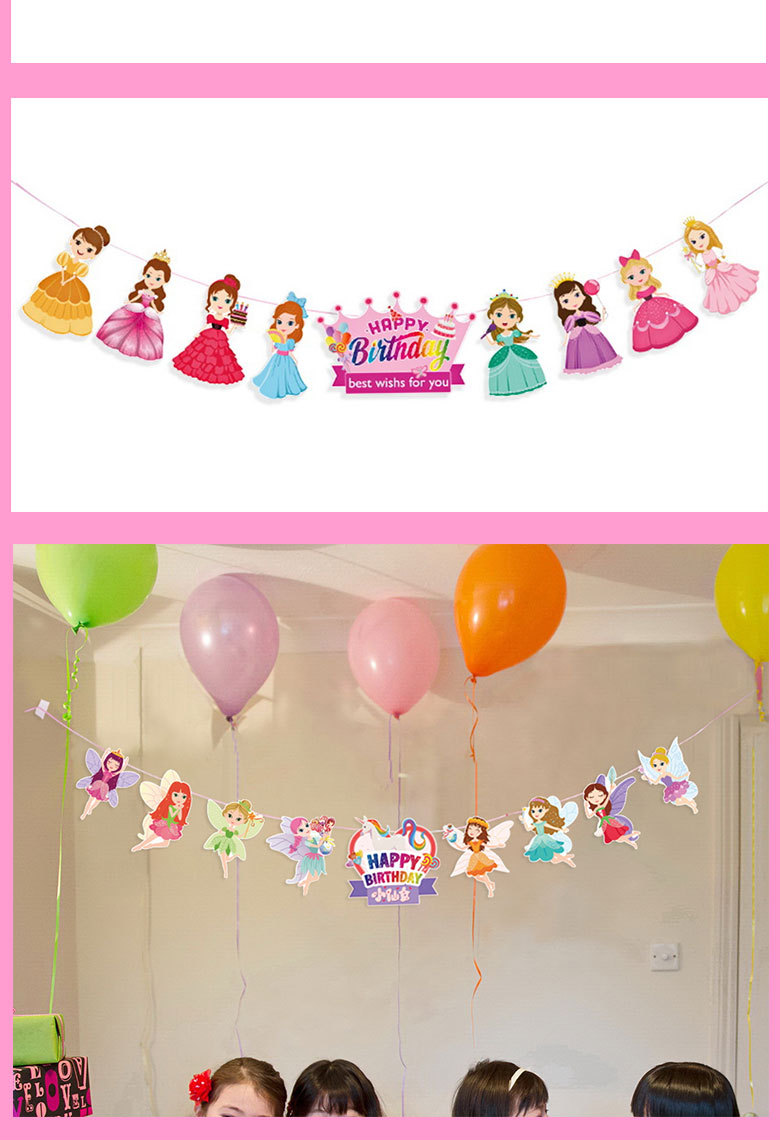 Pequeña princesa Feliz cumpleaños tire bandera niños cien días cumpleaños fiesta Fondo decoración pequeña Hada tire flor