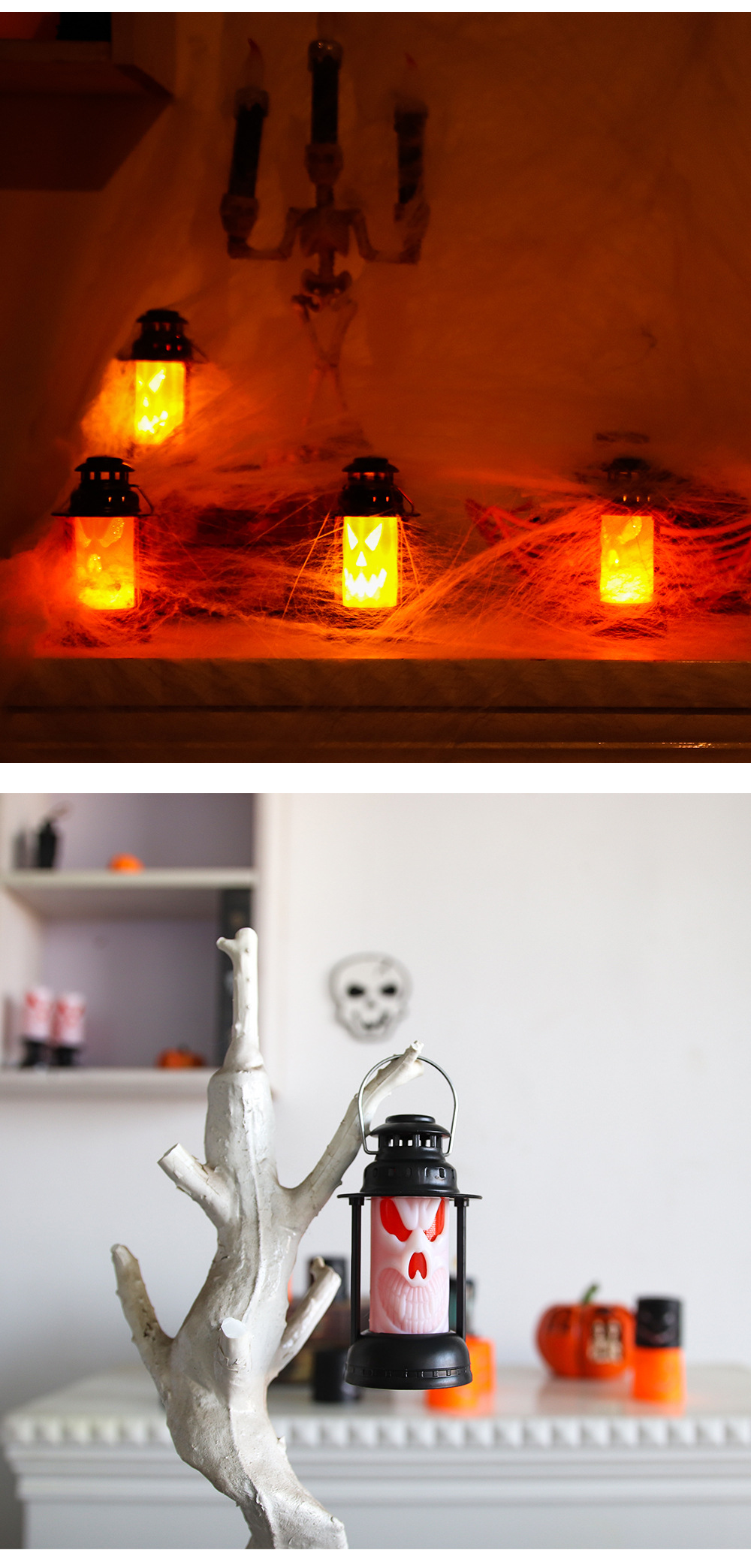 | Color | Cráneo colgando linterna Blanco,Cráneo colgando linterna naranja |