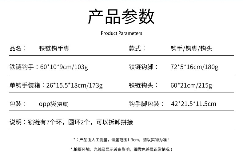 | Colores | Hand de gancho de cadena de hierro (uno),Pie de gancho de cadena de hierro (uno),Cabeza de gancho de cadena blanca (uno),Cabeza de gancho de cadena verde (uno),Gancho de cadena de hierro gancho de mano pie |
