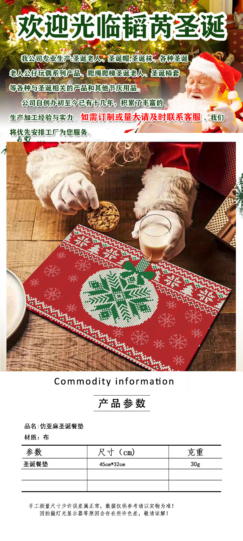 Navidad almohadilla de comedor letras inglesas nórdicas servillas de mesa comedor occidental una sola capa de lino almohadilla de aislamiento de la mesa