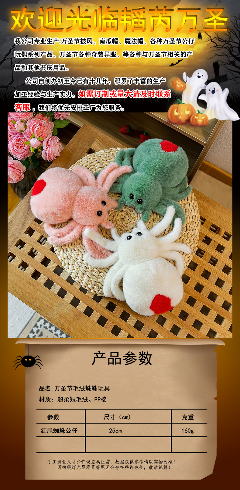 Muñeca de peluche de cola roja muñeca de peluche de Halloween muñeca de araña simulación muñeca de tela extraña alternativa lote de muñecas