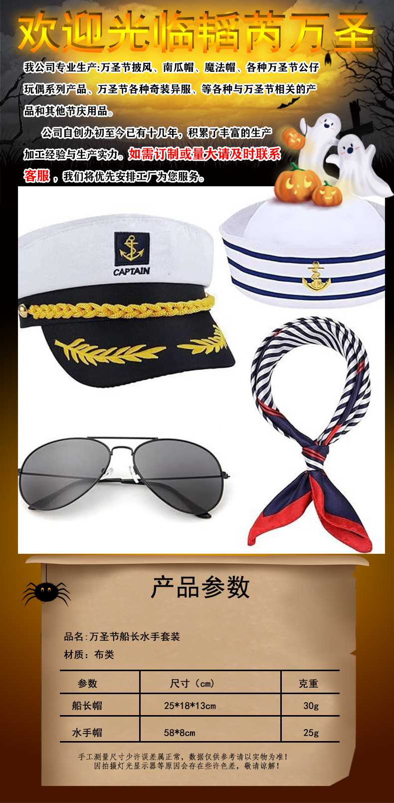 Halloween baile de máscaras capitán marino traje sombrero marino bufandas sombrero capitán gafas de sol sombrero capitán