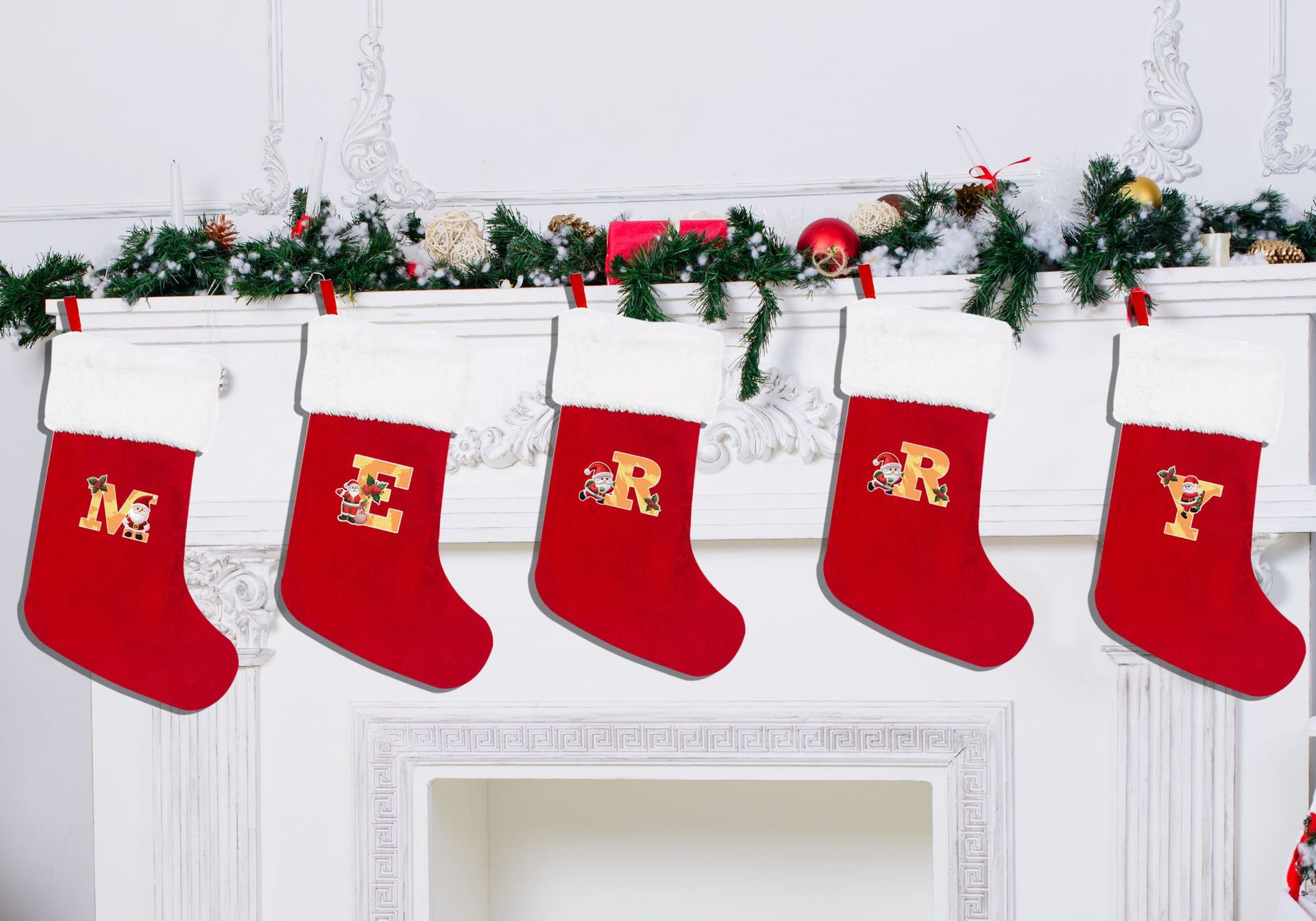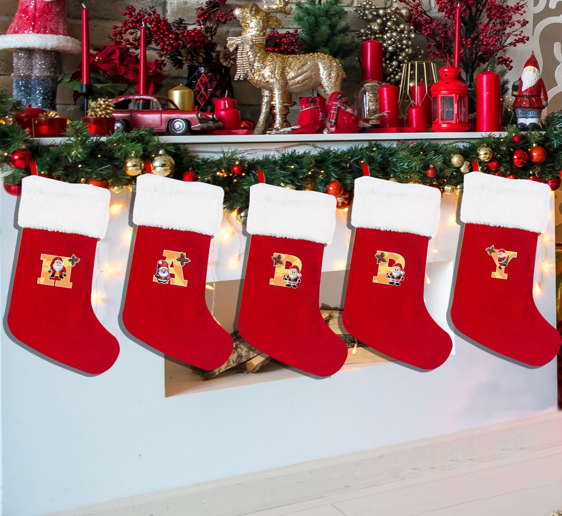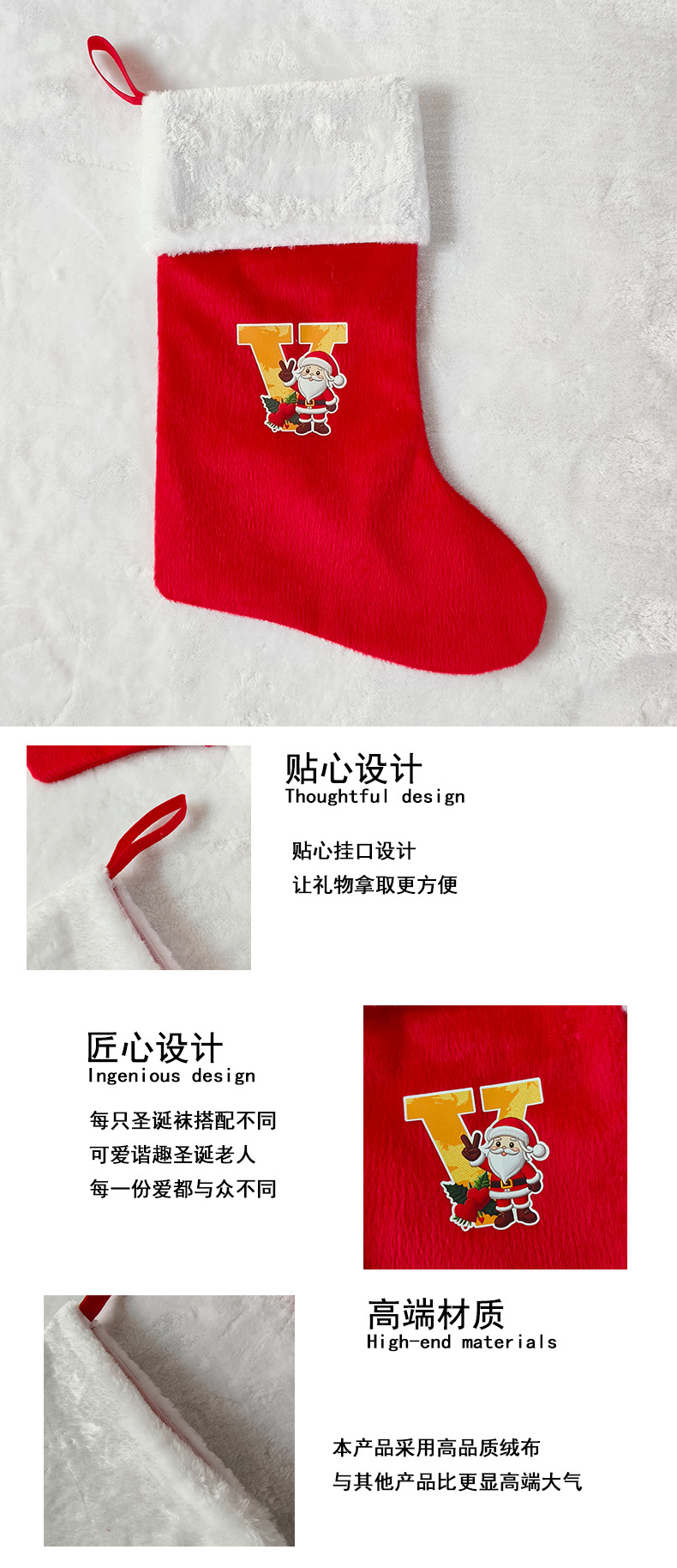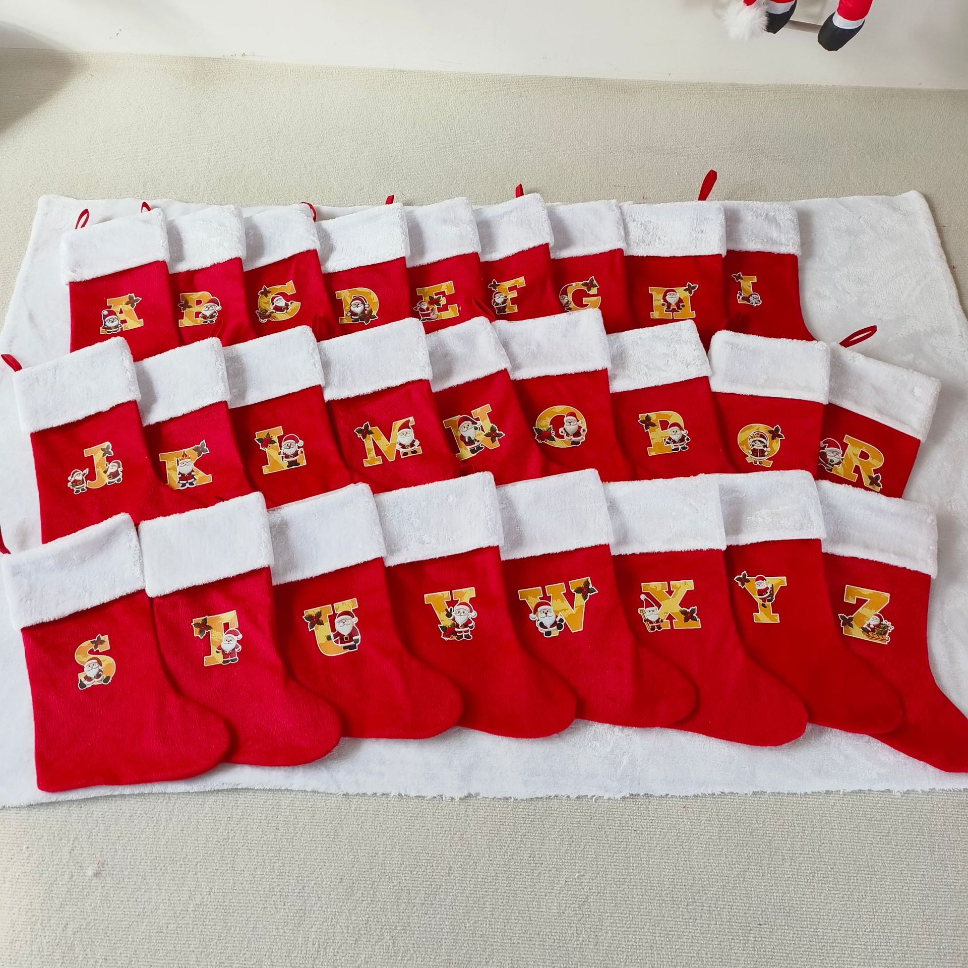 letras transfronterizas calcetines de Navidad encantadores y divertidos letras inglesas calcetines de Navidad creativas letras de Santa Claus