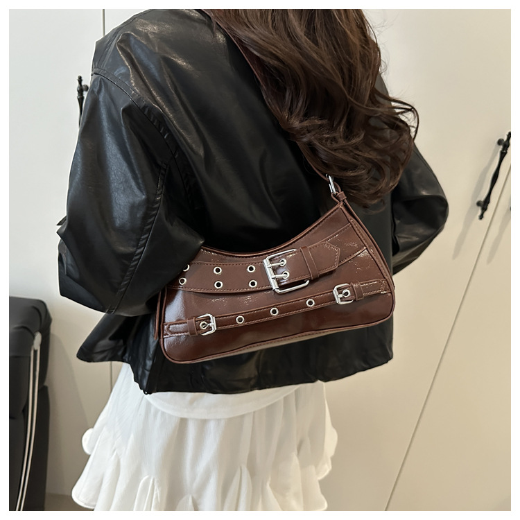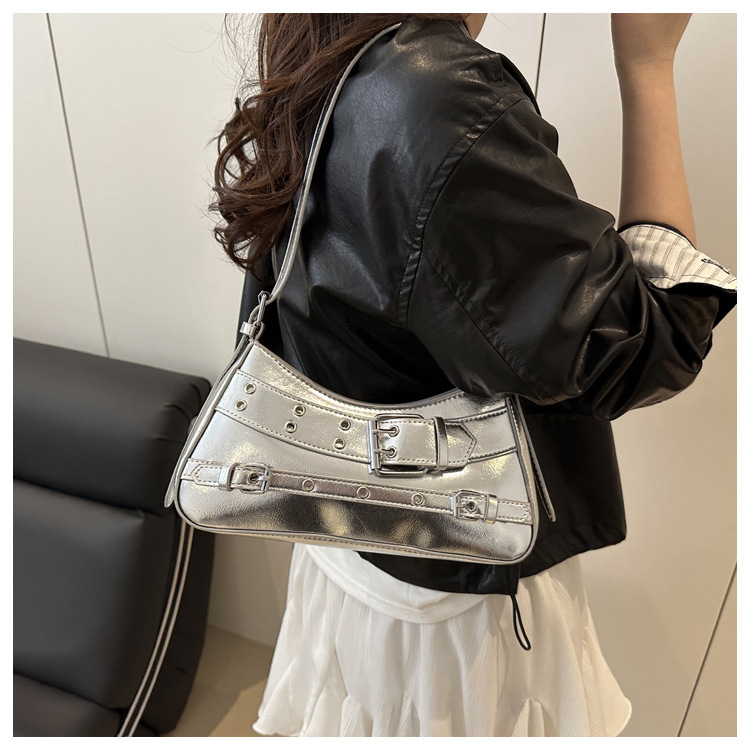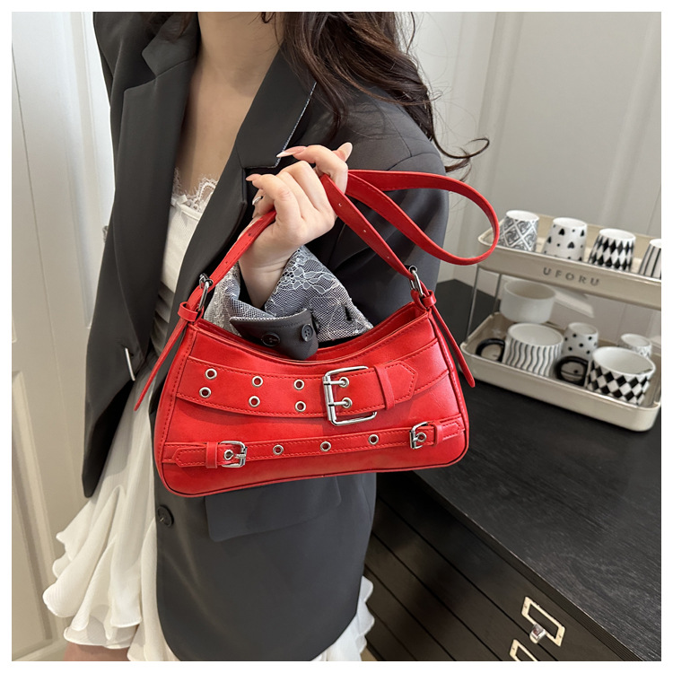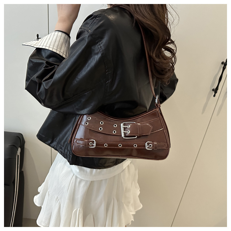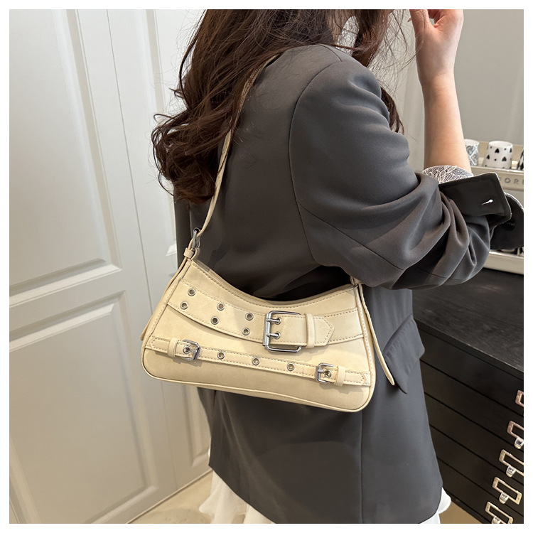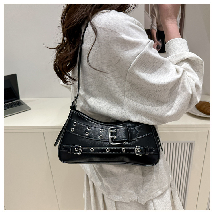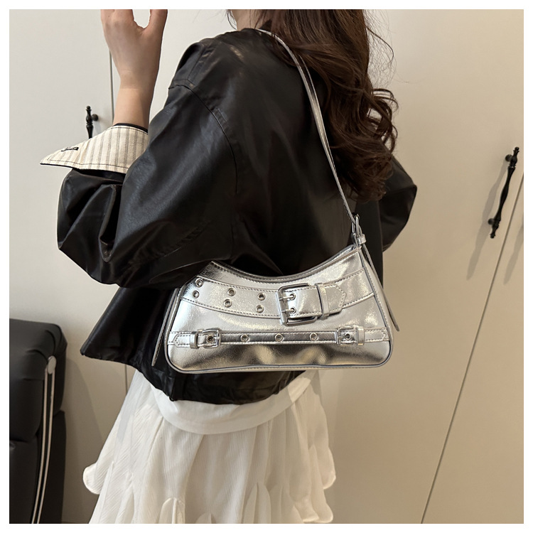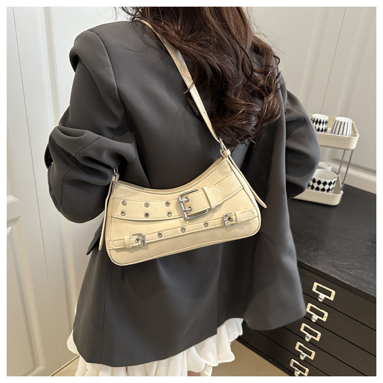 Transfronterizo 2025 primavera y verano nuevo estilo de alta calidad diseño de nicho bolso de viaje diario de un solo hombro bolso de axila con decoración de cinturón