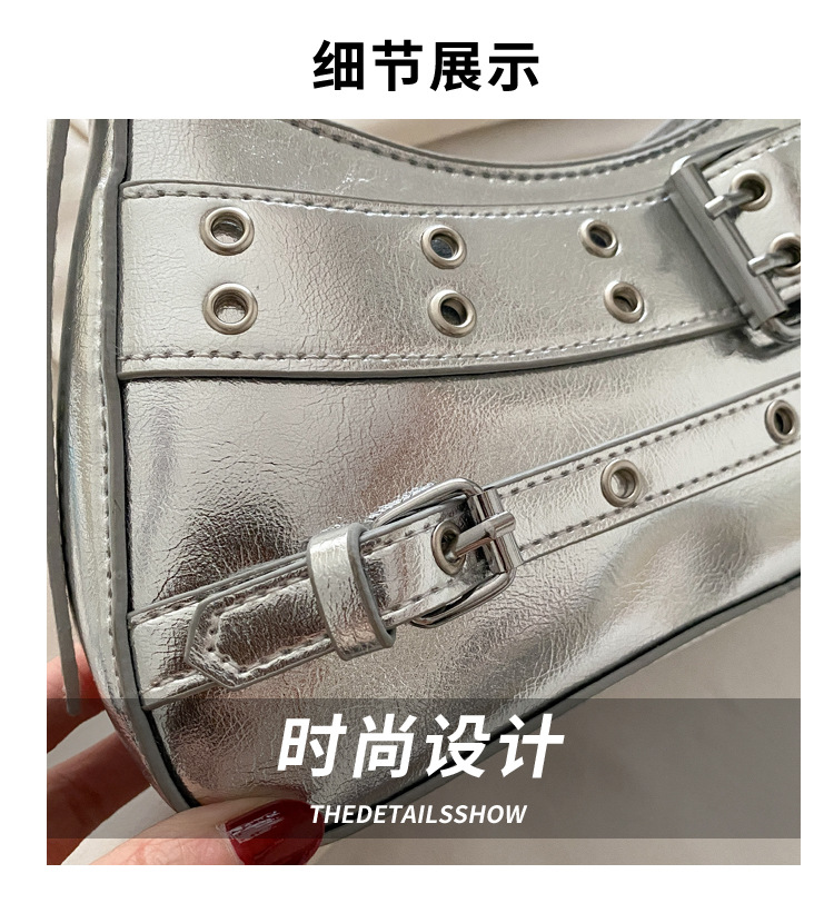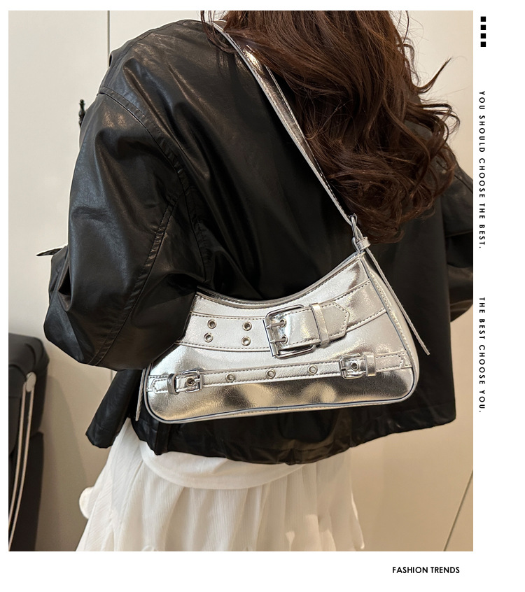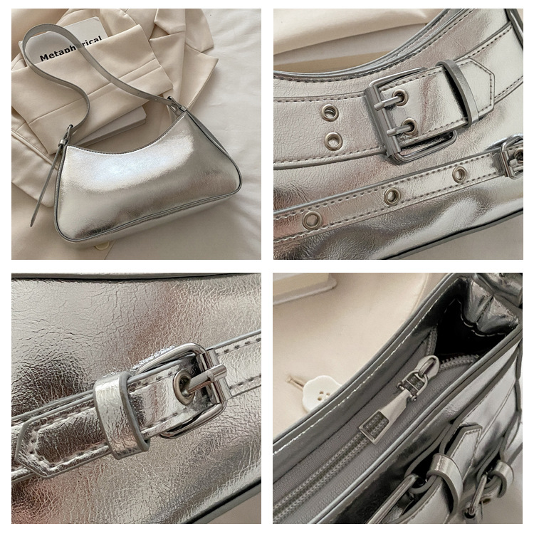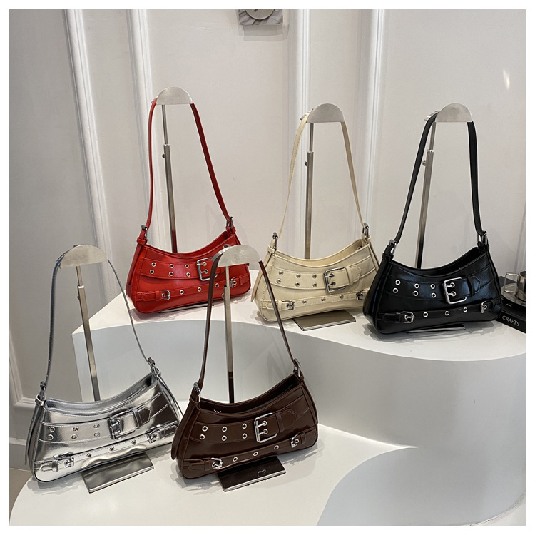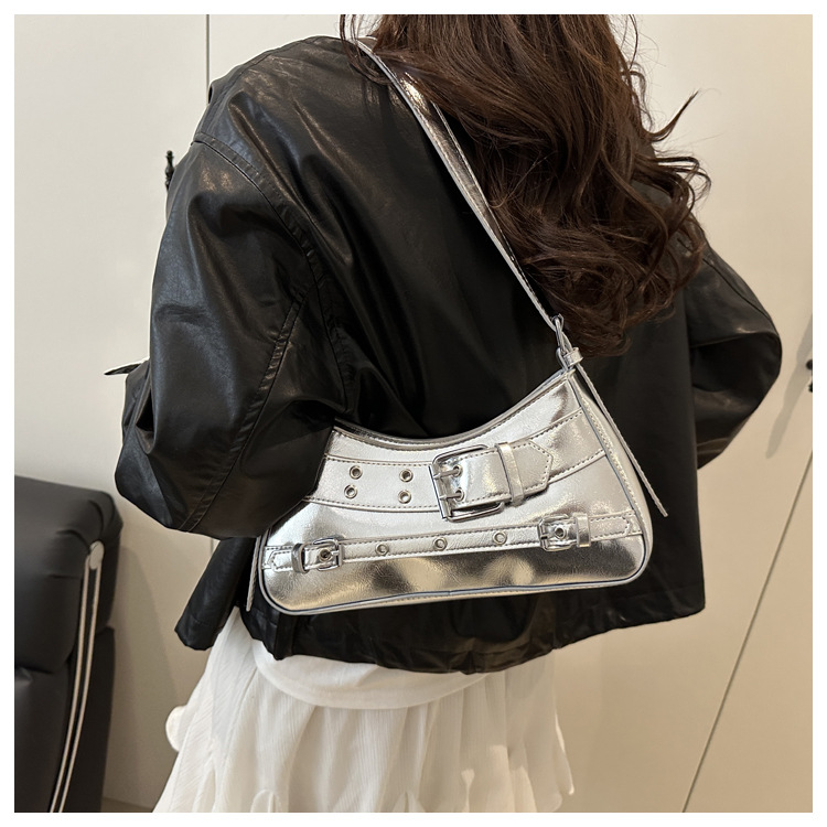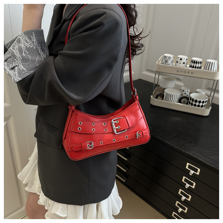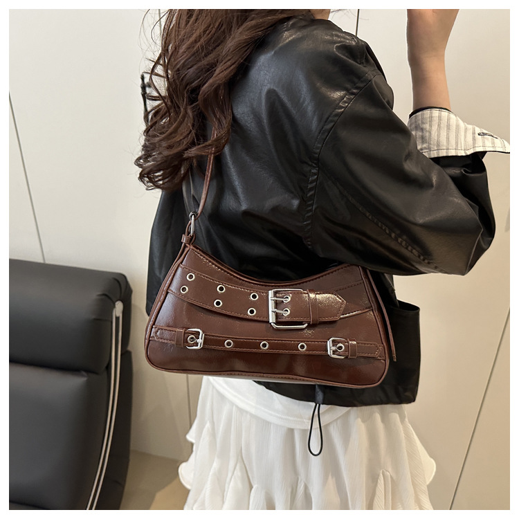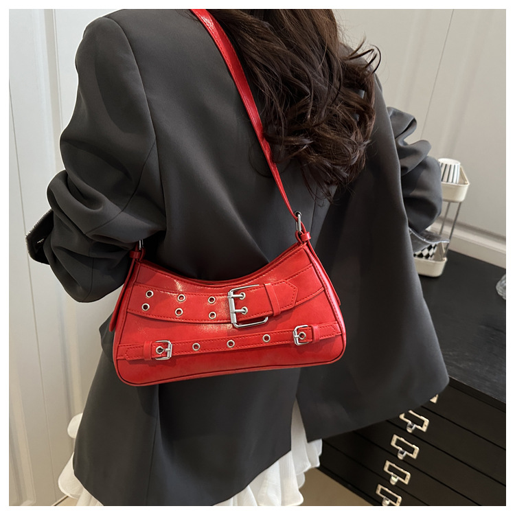Transfronterizo 2025 primavera y verano nuevo estilo de alta calidad diseño de nicho bolso de viaje diario de un solo hombro bolso de axila con decoración de cinturón