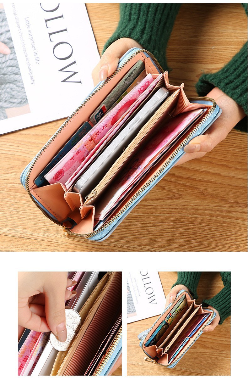 Transfronterizo, nueva billetera de mano, cremallera larga para mujer, billetera multifuncional para todo fósforo, billetera para teléfono móvil de gran capacidad
