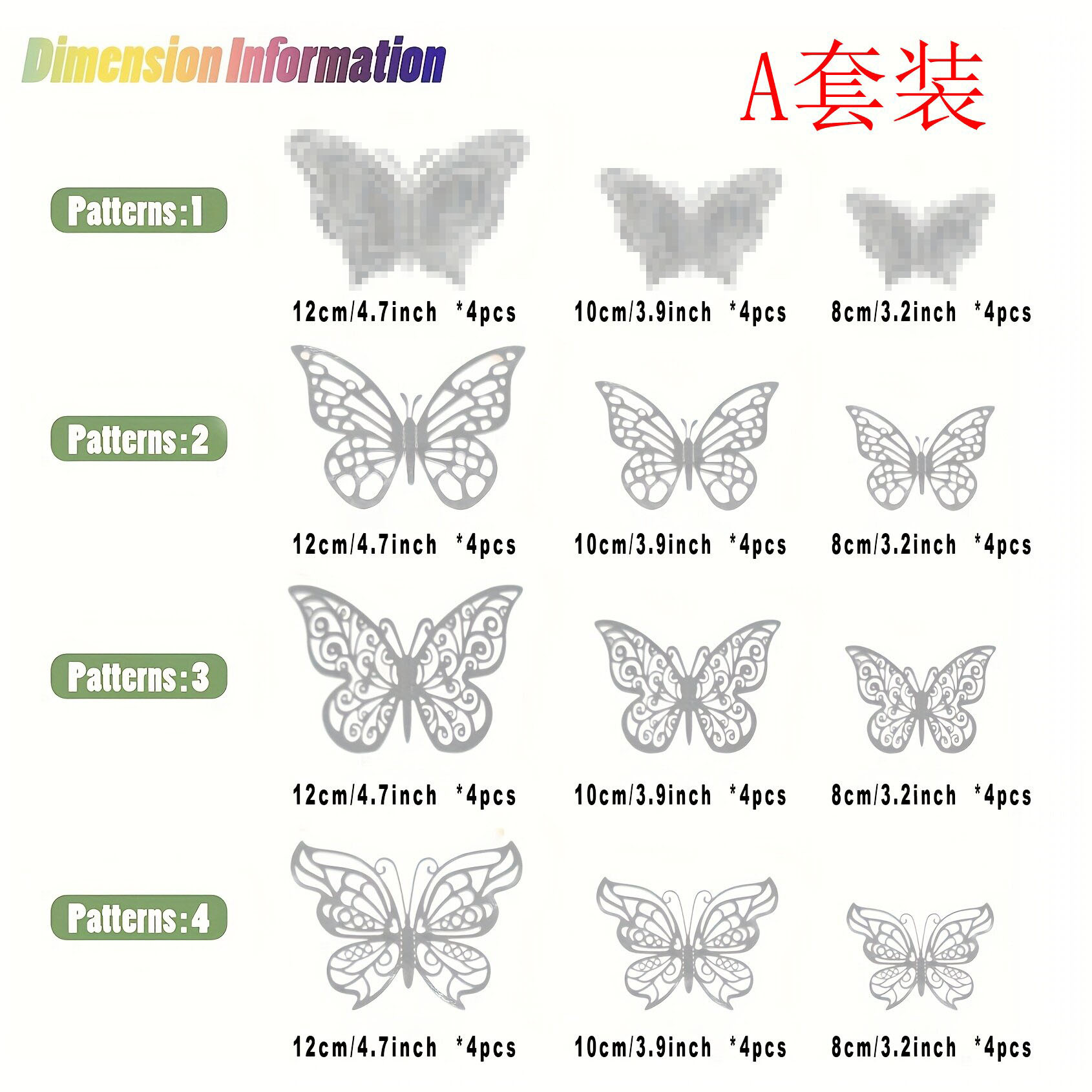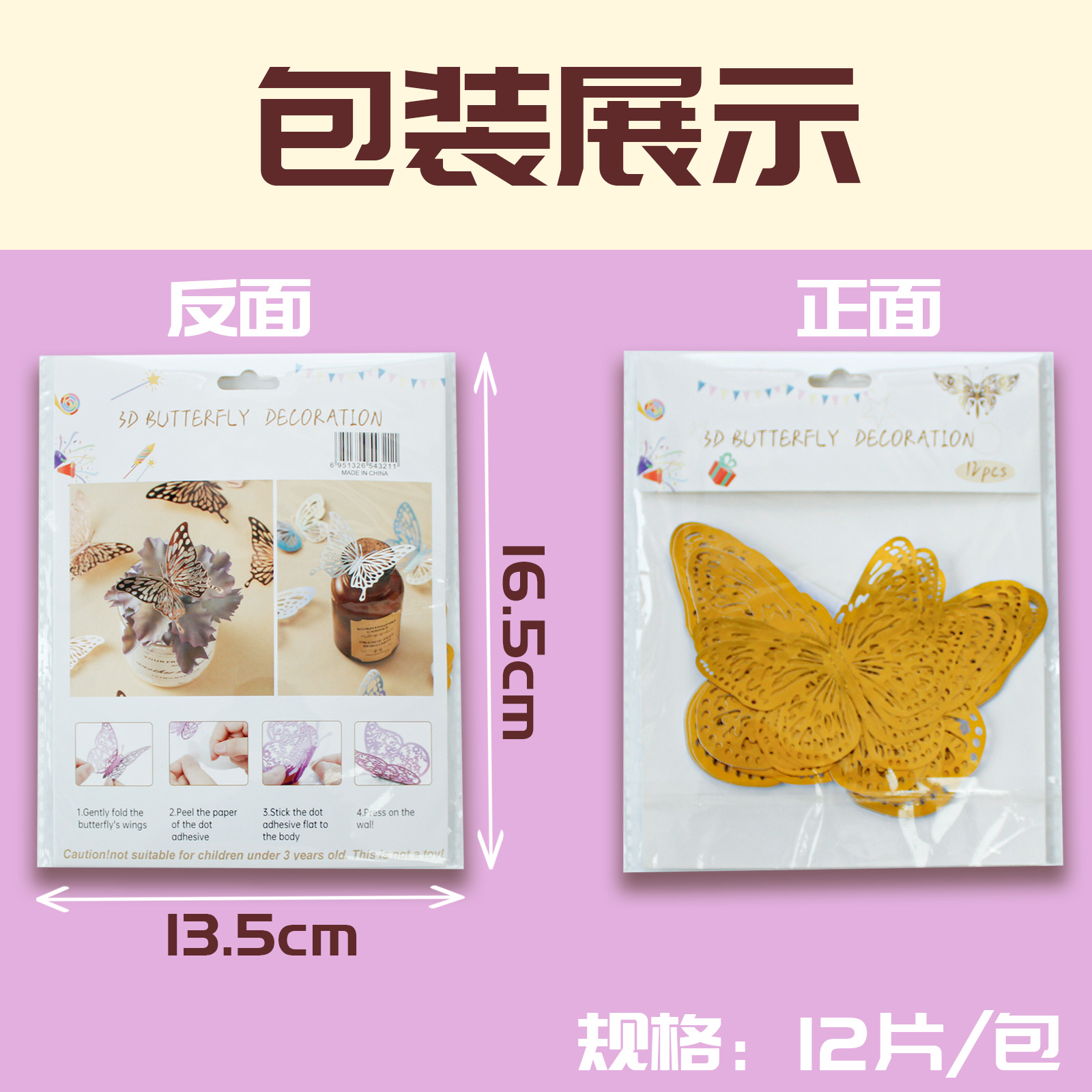 包装规格:OPP袋+点胶【大中小各16只】48只装:其中包含4个款式,每个款式12只