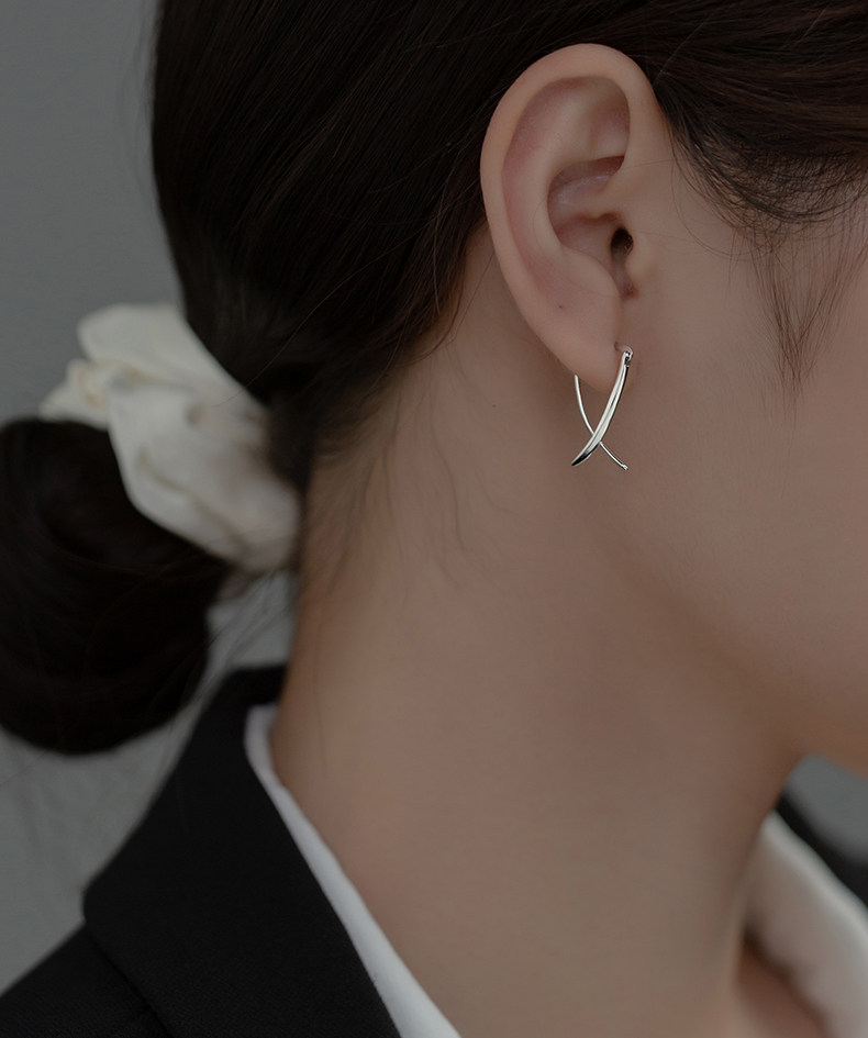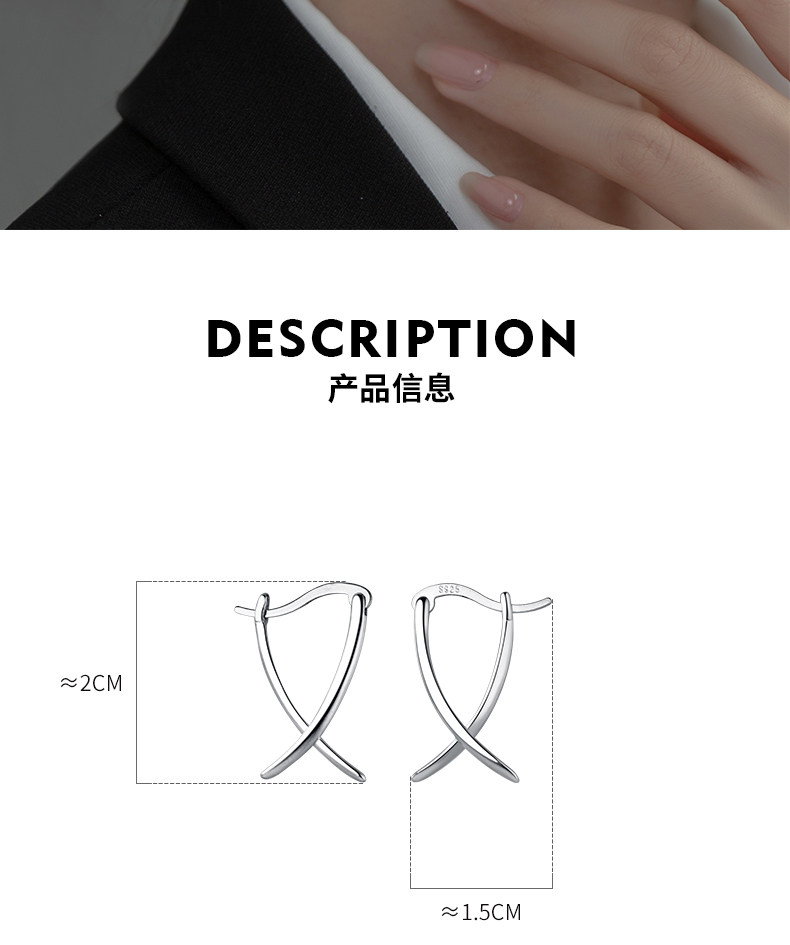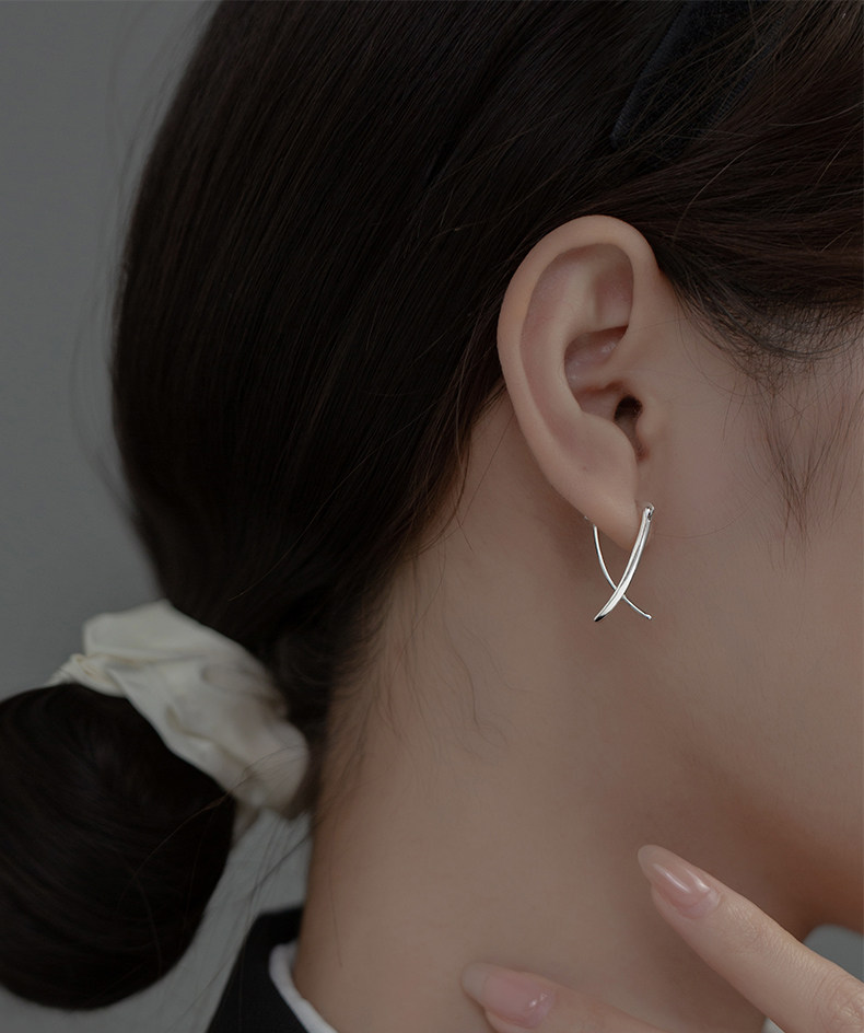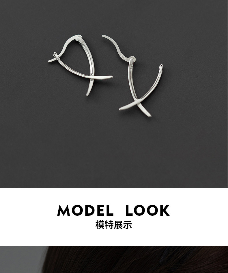 Eloch s925 plata simple corta línea cruzada pendientes de orejas femeninas temperamento coreano pendientes de orejas M00984