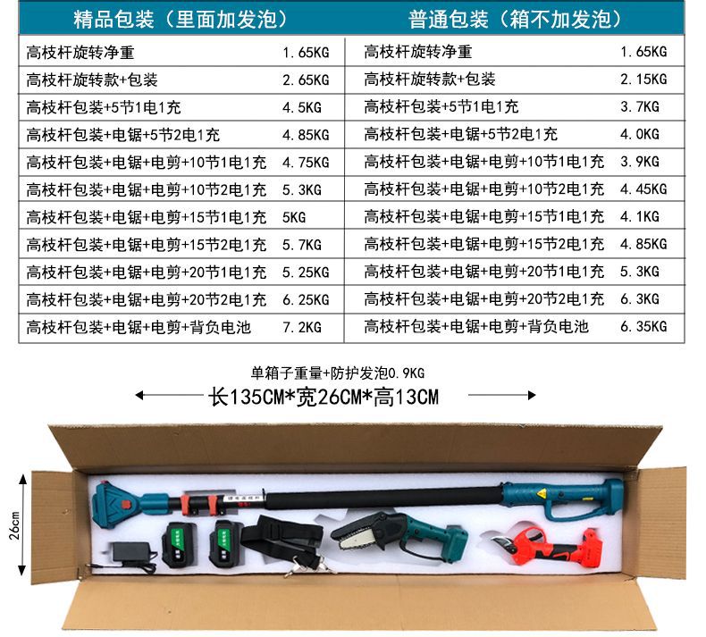 | Especificaciones | Poste de 2 metros de altura azul + tijeras 2,5 cm de dos electricidad y una caja de cartón cargada, poste de 2 metros de altura azul + motosierra de 6 pulgadas de dos electricidad y una caja de cartón cargada, poste de 2 metros de altura azul + motosierra de 6 pulgadas + tijeras 2,5 cm de dos electricidad y una caja de cartón cargada, caja de cartón de poste de 2,5 metros de altura azul, poste de 2,5 metros de altura azul + tijeras 2,5 cm de dos electricidad y una caja de cartón cargada, poste de 2,5 metros de altura azul + motosierra de 6 pulgadas de dos electricidad y una caja de cartón cargada, poste de 2,5 metros de altura azul + tijeras 2,5 cm de dos electricidad y una motosierra de 2,5 cm de dos electricidad.una caja de cartón cargada, una rama azul de 2,5 metros de altura + una motosierra de 8 pulgadas + tijeras de 2,5 cm, dos eléctricas y una caja de cartón cargada |
