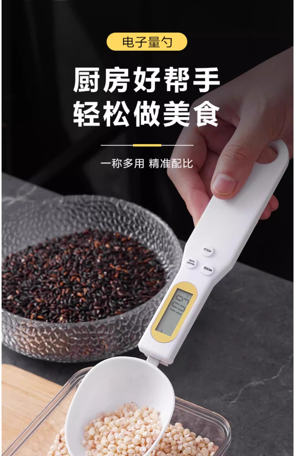 Escala electrónica de alta precisión cuchara de medición de cocina cuchara de medición de horneado cuchara de alimentación infantil cuchara de báscula con pesaje gramo de leche en polvo