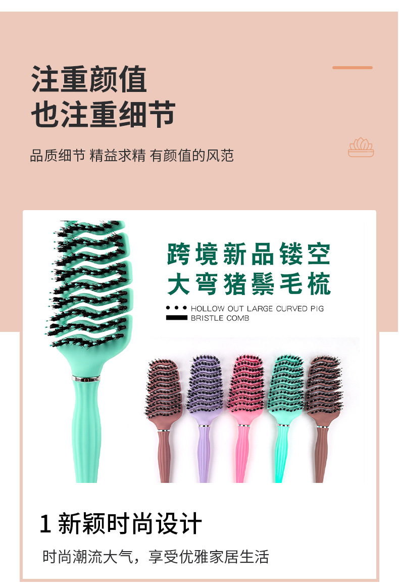 | Cavitación porcine hair gran brow brow | Materiales ABS y cerdas de cerdo de alta calidad, masaje suave y cómodo del cuero cabelludo para endirezar el cabello; tratamiento de pintura, sensación cómoda, diseño de curva no daña el cabello. |