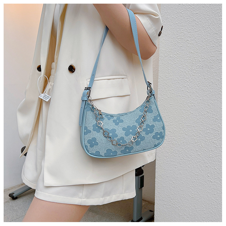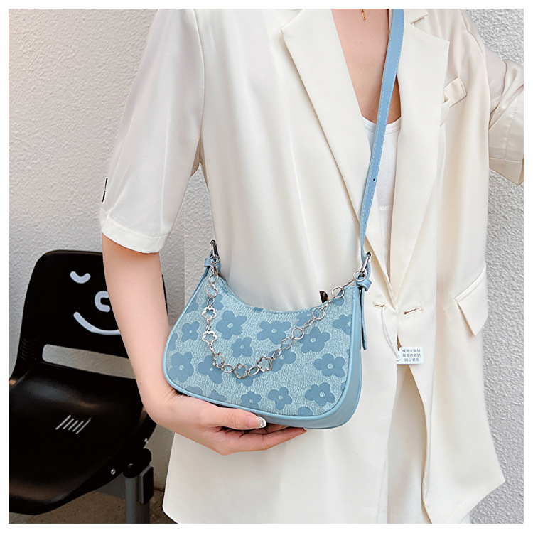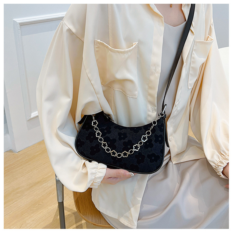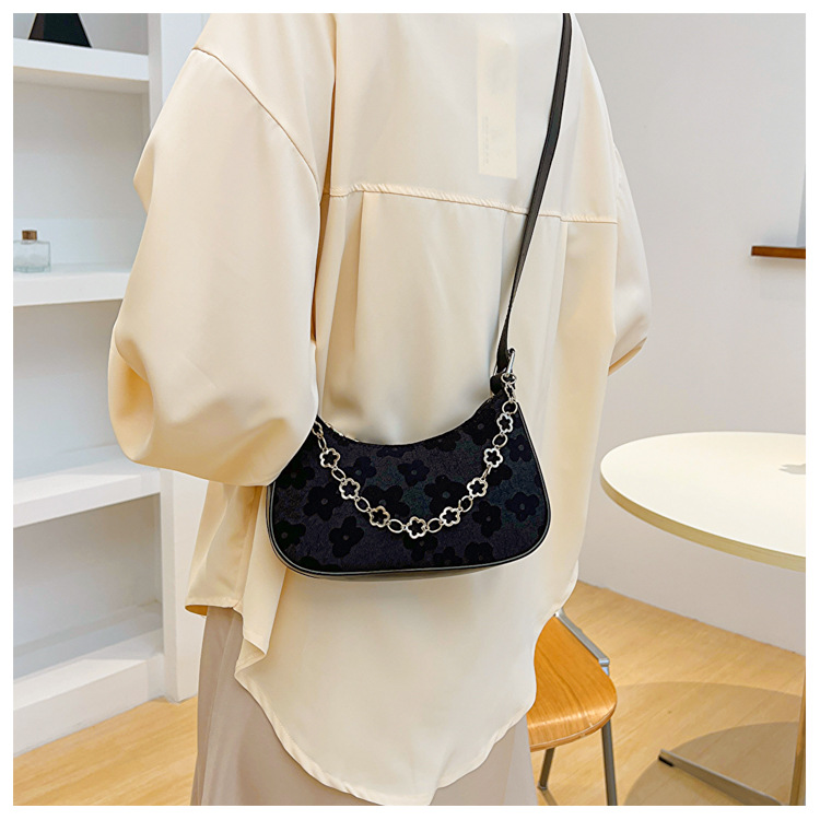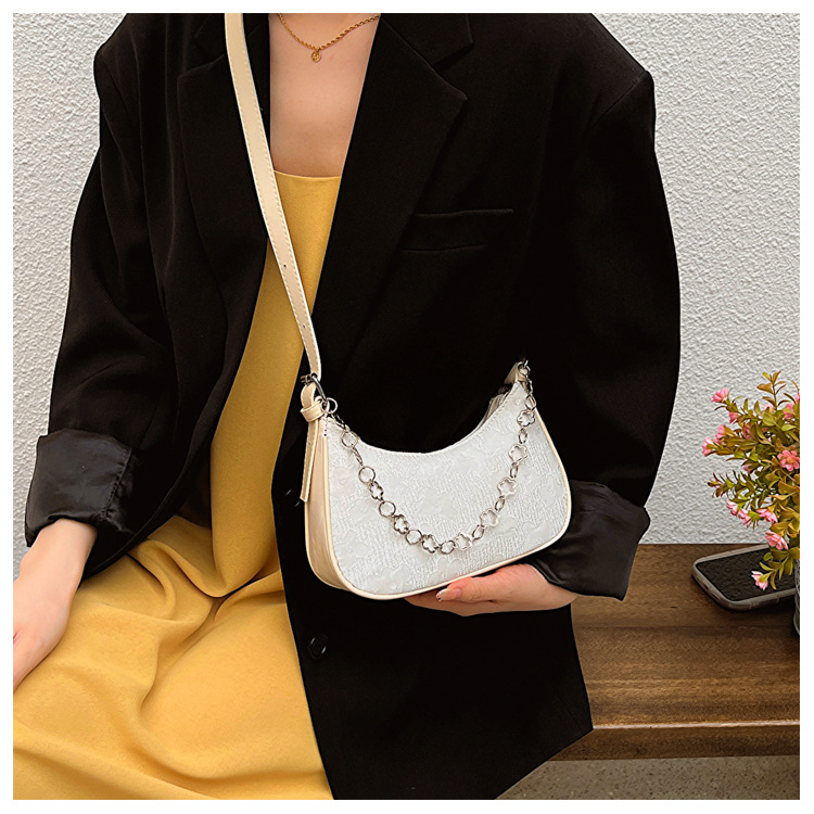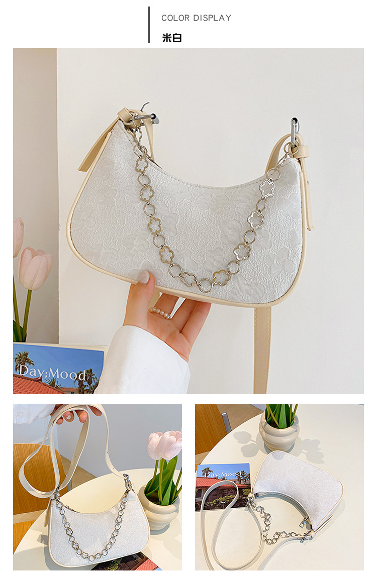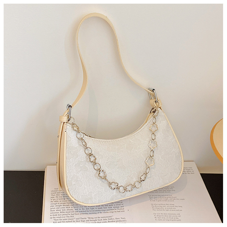 Bolso de las axilas para las mujeres 2023 nuevo bolso de mensajero de hombro de moda nicho retro ins baguette bolsa de tela tejida de encaje