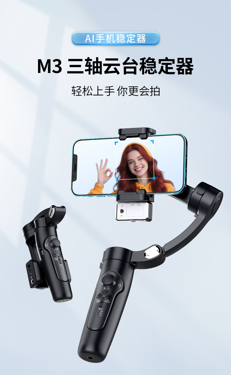 | Colores | Versión premium M3 negra (estabilizador de tres ejes + módulo AI + luz de relleno + control remoto extraíble + trípode pequeño + bolsa de almacenamiento),Versión básica M1 blanca (estabilizador de tres ejes + trípode pequeño + bolsa de almacenamiento),Versión básica de eje único C08 (68 cm + estabilidad antivibración + control remoto para controlar la rotación + disparo horizontal y vertical con un clic + espacio de sus sueños) |